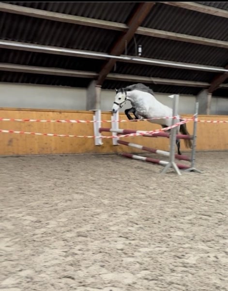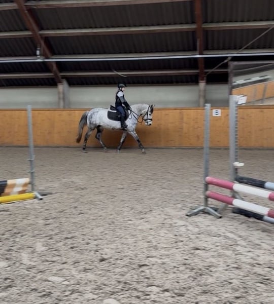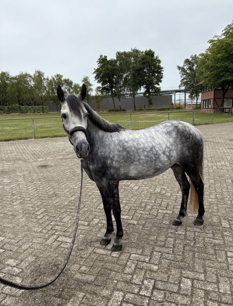 Oreo is een 8-jarige grijze ruin met een schofthoogte van ongeveer 1,36 m. Dankzij zijn compacte bouw is hij geschikt voor ruiters van wat grotere lengte. Hij is een mooie vrijetijdspartner en vooral gemotiveerd in het terrein. Buitenritten maakt hij probleemloos zowel solo als in een groep. Tijdens het rijden is Oreo goed te hanteren en toont hij zich attent en karaktervast. Hij zoekt daarom een ruiter die hem een duidelijke en faire leiding geeft. In de kudde is hij eerder een ranghoog paard en is hij geen typische knuffelpony in de omgang. Oreo is braaf in de trailer, gaat regelmatig naar de hoefsmid en is uiteraard gevaccineerd. Ook zijn tanden zijn gecontroleerd en verzorgd. Hij wordt alleen geplaatst in een passend en liefdevol thuis. Bij interesse kunt u gerust contact opnemen via 01727310856.