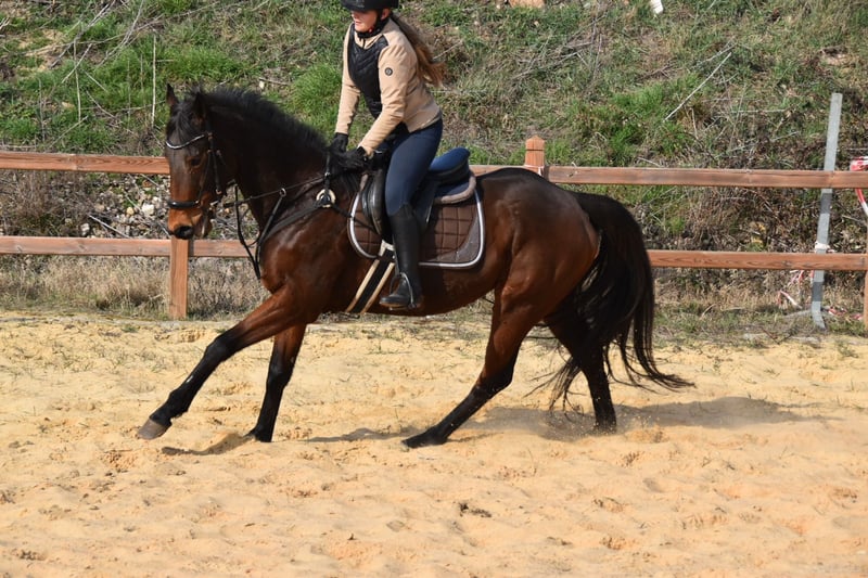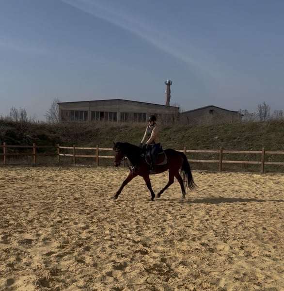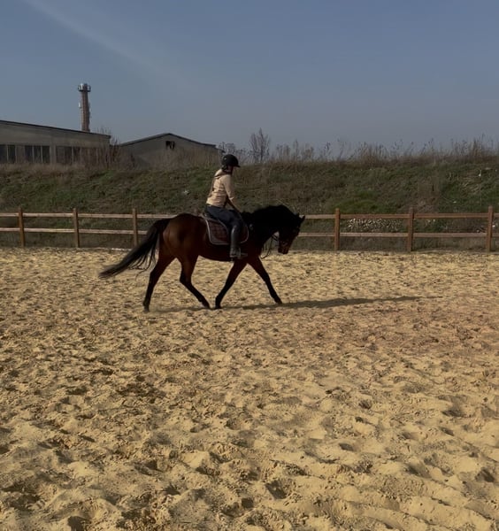 🌟 Schicke braune Blüter-Stute mit Ausdruck & Herz zu verkaufen Diese elegante braune Blüter-Stute (ca. 162 cm) begeistert mit ihrem wunderschönen Ausdruck, ihren sehr guten Grundgangarten und ihrem liebevollen, zugewandten Wesen. Ein Pferd, das man sofort gernhat. 🐴 Charakter & Umgang • Verschmust, menschenbezogen und immer freundlich • Sehr motiviert bei der Arbeit • Schnell im Lernen und stets bemüht, alles richtig umzusetzen 🏇 Ausbildung & Reiteigenschaften • Auf dem Platz wie auch in der Halle zuverlässig und konzentriert • Fleißig, rittig und mit einer tollen Arbeitseinstellung • Kein reines Anfängerpferd — sie möchte gefördert werden und profitiert von einem Reiter mit klaren, fairen Hilfen 🌿 Haltung & Sozialverhalten Aktuell steht sie in Boxenhaltung, geht jedoch täglich für mehrere Stunden mit anderen Pferden auf die Koppel. Sie genießt den Kontakt zu ihren Artgenossen sehr, zeigt sich sozial, ausgeglichen und absolut unkompliziert im Herdenverband. 💫 Besonderheiten • Ausdrucksstark, elegant und mit schönen, elastischen Bewegungen • Ein Pferd, das sich weiterentwickeln möchte und viel Freude an gemeinsamer Arbeit zeigt 🤎 Probereiten Ein Probereiten ist nach Absprache möglich. Für einen Termin berechnen wir 30 €, die bei einem Kauf selbstverständlich vollständig verrechnet werden. So können Interessenten sie in Ruhe kennenlernen und ihr Potenzial selbst erleben