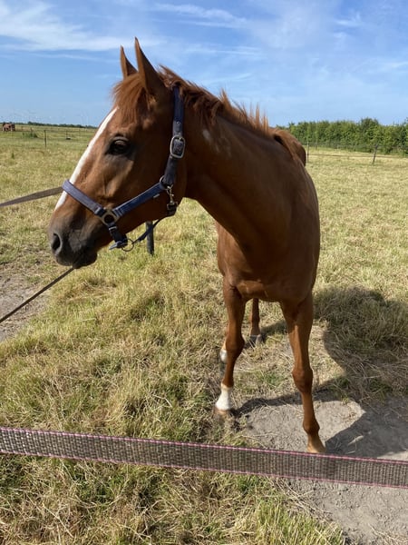 Wir verkaufen unseren 6-jährigen Vollblüter Wallach, abstammend von George Vancouver x Bidart. Er ist bis vierjährig im Besitz von The Dutch Master Stables Rennen gelaufen und wurde anschließend von Libertys Home übernommen, wo wir ihn für unseren Schulbetrieb erworben haben. Im letzten Jahr habe ich ihn von meinen Eltern übernommen, um ihn Dressur- und Springmäßig weiter zu fördern. Da mir momentan jedoch die Zeit fehlt, steht er nun zum Verkauf. Er ist barhuf, wird regelmäßig dem Hufschmied vorgestellt, ist geimpft und entwurmt. Beim Verladen zeigt er sich brav und unkompliziert. Er kennt das Ausreiten sowohl allein als auch in der Gruppe und zeigt sich dabei aufmerksam und unkompliziert. Springen, sowie das Arbeiten auf dem Vielseitigkeitsplatz sind ihm ebenfalls vertraut. Ein absoluter Allrounder – sowohl für den Freizeit- als auch für den Sportbereich interessant. Bei Interesse gerne melden unter +49 179 3722430