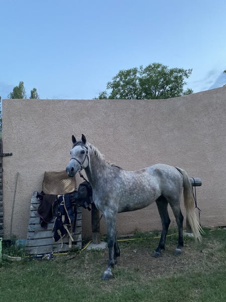 Hongre Pur sang arabe de 7 ans. Né le 04/07/2019. Il vit actuellement avec un copain au pré Débourrage fait en 2024, dans un centre de débourrage. Très sensible Debourré aux 3 allures mais très vert dans le travail. Arrêt du travail pas longtemps après le débourrage du à plusieurs chutes lors du montoir. Visite ostéo effectuée, pas de problème de dos. Vaccins et vermifuges OK Dents OK Vente du à un manque de temps