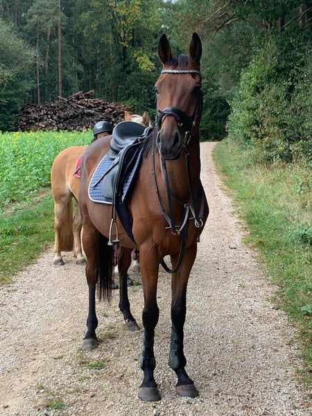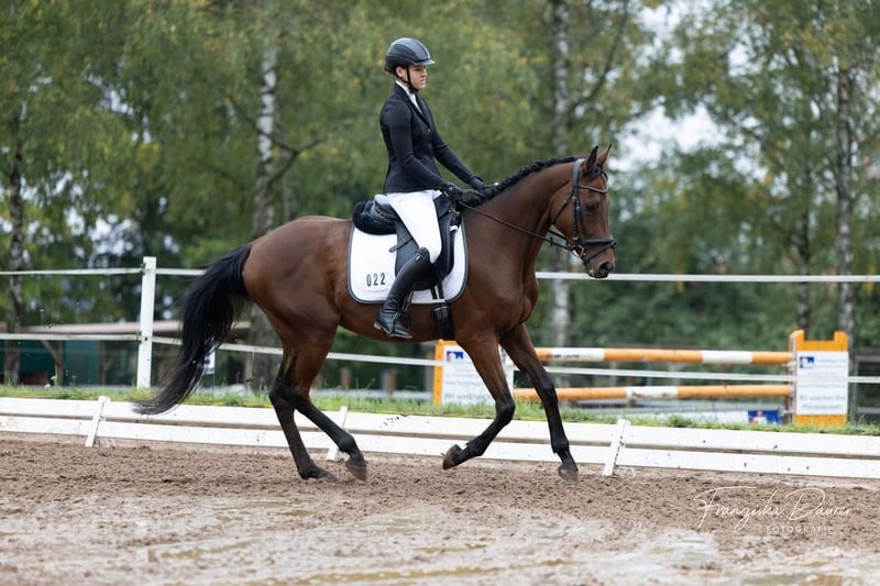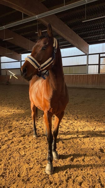 Ungarischer Vollblut-Wallach – 9 Jahre – 1,57 m – fein zu reiten & geländesicher Zum Verkauf steht ein 9-jähriger bildhübscher ungarischer Vollblut-Wallach mit einem Stockmaß von 1,57 m. Er ist regelmäßig geimpft und entwurmt und wurde seit 2023 bei uns im Schulbetrieb eingesetzt. Der Wallach ist in der E-Dressur platziert, kennt Turnieratmosphäre und war bereits auf mehreren Orientierungsritten erfolgreich unterwegs. Im Gelände zeigt er sich brav, zuverlässig und auch in der Gruppe sehr angenehm zu reiten. Charakterlich ist er sensibel, menschenbezogen und fein an den Hilfen. Im Schulbetrieb ist er auf Dauer nicht glücklich und wünscht sich daher eine feste Bezugsperson, die ihm Sicherheit, Ruhe und eine konsequente, faire Führung bietet. In privater Haltung mit einem feinfühligen Reiter kann er sein Potenzial gut entfalten. Ein ideales Pferd für ambitionierte Freizeitreiter, die ein ehrliches Pferd mit Erfahrung und gutem Charakter suchen. Video auf Anfrage. Bei Fragen einfach fragen. Tel.: 015150540750 gerne Whatsapp.