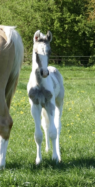 Ikelos A, genoemd naar de Griekse god van de dromen. Een bijzonder opvallende ruinveulens in buckskin gevlekt, stermerrie van Insider x Magic Memphis x Rebel Z III. Geschikt voor springen en eventing! D-34434 Borgentreich