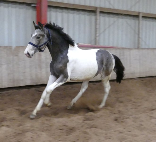 Miradon ! Âgé de 1,5 ans, parfaitement développé, avec un caractère adorable et amical ! MIRADON A – cela signifie « aimer le bon ». Né en 2024, Miradon est un fils de Michelangelo, issu de Ismo's Emi, une fille d'Ismo x Shakespeare x Potsdam NRW. Il est la demi-sœur du cheval de reproduction Cadiz. Nous estimons sa taille finale à environ 168 cm. Un jeune cheval très prometteur, en buckskin tobiano, idéal pour le concours complet et le saut d’obstacles !