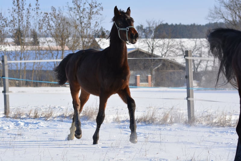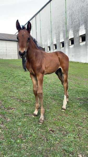 Zum Verkauf steht ein sehr typvoller Warmblut-Hengst, der im August 2 Jahre alt wird. Sein Endmaß wird derzeit auf ca. 170–175 cm geschätzt. Der junge Mann ist im Offenstall aufgewachsen und zeigt sich entsprechend robust, sozial und ausgeglichen. Er kennt bereits das Fohlen-ABC, verschiedene Fahrzeuge und Alltagssituationen und bleibt dabei stets neugierig, aufmerksam und absolut unerschrocken. Im Umgang ist er sehr menschenbezogen, freundlich und interessiert. Außerdem ist er schmiede- und verladefromm und zeigt sich insgesamt sehr brav und lernwillig. Ein spannender Junghengst mit viel Potenzial für Sport oder Freizeit, der nun seinen Menschen sucht. Er ist bei uns geboren, Mutter (vorletztes Bild) und Vater (letztes Bild) können ebenfalls besichtigt werden. Beide Eltern werden im Amateurbereich gesprungen und zeigen hier sehr gute Veranlagungen. Abgabe ausschließlich an Bestplatz. Transport möglich.