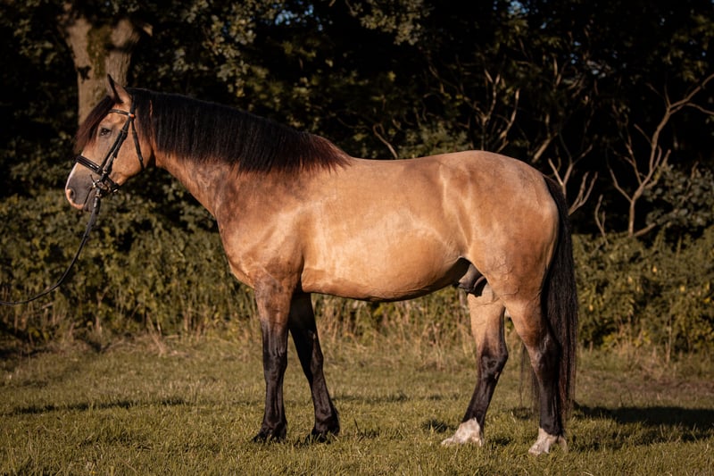 Cubi (Cubilano) Geboren: Juni 2018 | Rasse: Warmblut-Tinker-Mix | Stockmaß: ca. 164 cm | Sonderfarbe: Buckskin * Sensibles Pferd, dadurch kein Anfängerpferd * Kein Gewichtsträger * Kein Notverkauf | Händler, Reitschulen oder Reittherapie kommen nicht infrage * Regelmäßig geimpft (Influenza, Tetanus), entwurmt, zahnärztlich und physiotherapeutisch betreut * Vom Boden vorbereitet zum Weiter-Ausbilden Cubi habe ich als Absetzer gekauft und seitdem mit viel Herz und Geduld begleitet. Er ist ein feinfühliges Pferd, das mit Ruhe und Fairness, ohne zu viel Druck, sehr motiviert mitarbeitet und für vieles offen ist. Besonders gut vorstellen kann ich ihn mir in der klassischen Reitweise. Ich suche einen Menschen mit Geduld und feinem Händchen, der Freude an einem partnerschaftlichen Miteinander hat und seine feinen Signale wahrnimmt. Wichtig ist mir ein beständiges Zuhause, in dem er respektvoll gefördert wird und weiter wachsen darf. >> Ausbildung Cubi ist unverbraucht und bisher schonend vom Boden ausgebildet. Er kennt klassische Handarbeit, Fahren vom Boden, Doppellonge, Ansätze in der Zirzensik und trägt den Reiter mit Sattel in Schritt und Trab zuverlässig an der Longe. Auch in brenzligen Situationen ist Cubi immer händelbar. Mit seiner Vertrauensperson ist er im Gelände unerschrocken und fährt auch anständig mit dem Anhänger. >> Haltung Optimalerweise wünsche ich mir für Cubi ein neues Zuhause im Offenstall oder Trail mit Weidegang im Sommer. Er kennt auch Boxenhaltung über Nacht und verschiedene Herdenkonstellationen. Er springt nicht auf und ist nicht hengstig, fühlt sich aber in Wallachherden erfahrungsgemäß am wohlsten. >> Für Interessenten Ein mehrfaches Kennenlernen ist ausdrücklich erwünscht. Bodenarbeit und Vorstellen unter dem Reiter sind beim ersten Treffen möglich, ein persönliches Probereiten erst nach weiteren Treffen. Auch ein Ausflug mit dem Anhänger in den Reitverein ist auf Wunsch denkbar. Bei Interesse kann hochwertige Ausrüstung, wie sein neuer Sommersattel, zusätzlich erworben werden. In einem Radius von ca. 2 Stunden Autofahrt um Hamburg kann er von mir gebracht werden. Damit ich mir vorab ein gutes Bild machen kann, schreibt mir bitte direkt in eurer Anfrage: * Wer seid ihr und welche Pferdeerfahrung habt ihr? * Was wäre Cubis Aufgabe und was ist euch im Umgang besonders wichtig? * Wie sieht sein zukünftiges Zuhause aus? Anfragen ohne diese Infos oder mit „Was letzte Preis“ beantworte ich nicht.