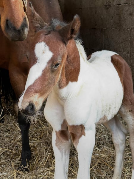 Notre année de reproduction 2026 commence avec un magnifique poulain étalon pie. Ce petit bonhomme nous a immédiatement conquis. I-Power A par Insider x Chaman 🫶 Insider descend du bai Ismo (Ilasso x First Gotthard x Zeus), un étalon qui transmet à ses descendants ses qualités de saut ainsi que son caractère exceptionnel. Le grand-père maternel Chaman (Baloubet de Rouet x I Love You) est l’un des meilleurs étalons de saut au monde et a lui-même connu une carrière très réussie avec Ludger Beerbaum. Ne manquez pas votre futur crack en couleur !