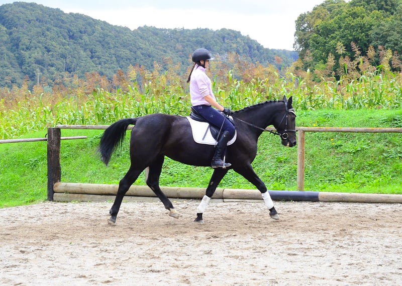 This 10-year-old beautiful black mare with a great character is easy in the neck and extremely comfortable to sit. She is familiar with the arena, indoor riding, and trail rides. A great leisure horse for the not-so-tall rider. The mare has also been driven in a pair.