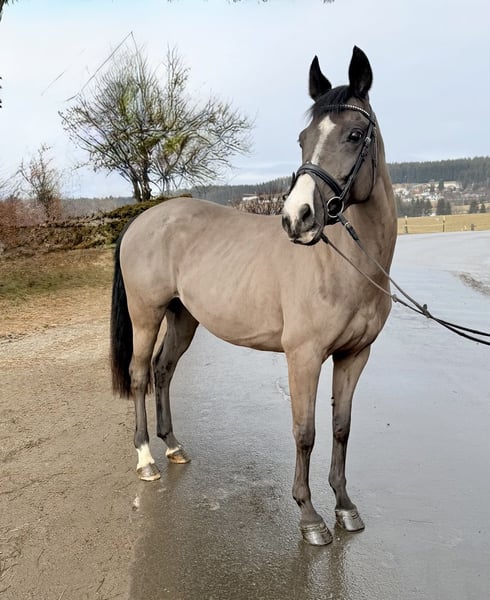 Mary is a ten-year-old black mare (currently clipped) with a very distinctive presence. Standing approximately 157 cm tall, this mare impresses with her good basic gaits, her straightforward temperament, and her impeccable character. Mary is a horse for relaxed riding and fun. Whether in the riding arena or out on the trail, she is always attentive and eager to please. She also handles small jumps flawlessly. Further information and videos are available via WhatsApp or by phone at: +43 660 3632373 Location: Pelmberg 15 / Upper Austria Viewing and trial riding are gladly arranged by appointment! Transportation of the horse can also be organized upon request.