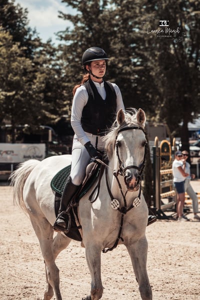 Spezi is a beautiful, gentle grey mare with a particularly charming personality. She is well-behaved and forgiving of rider mistakes – making her an ideal mount for young riders who want to gain first experience in show jumping or competition. She jumps reliably and with enthusiasm, preferably over smaller heights up to around 1 meter. Perfect for riders who enjoy jumping but are not seeking a "high-flyer." She is also relaxed and always manageable in the terrain. Features: • Well-behaved in handling and at the blacksmith • Easy to load • Regularly vaccinated, dewormed, and dental checked • No vices, no bucking, no rearing For more information or pictures/videos: Maya Blackholm 0151 54445710