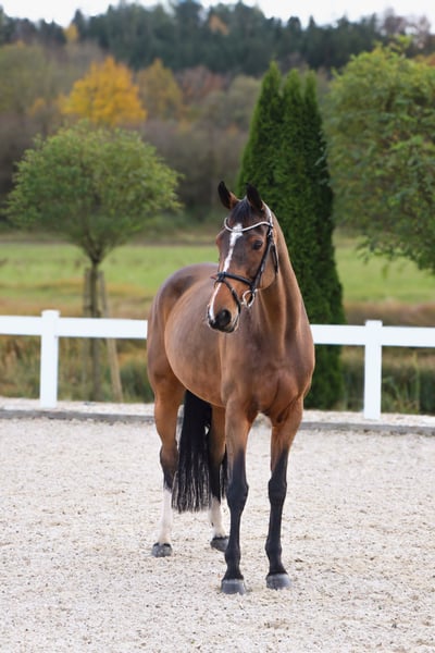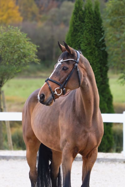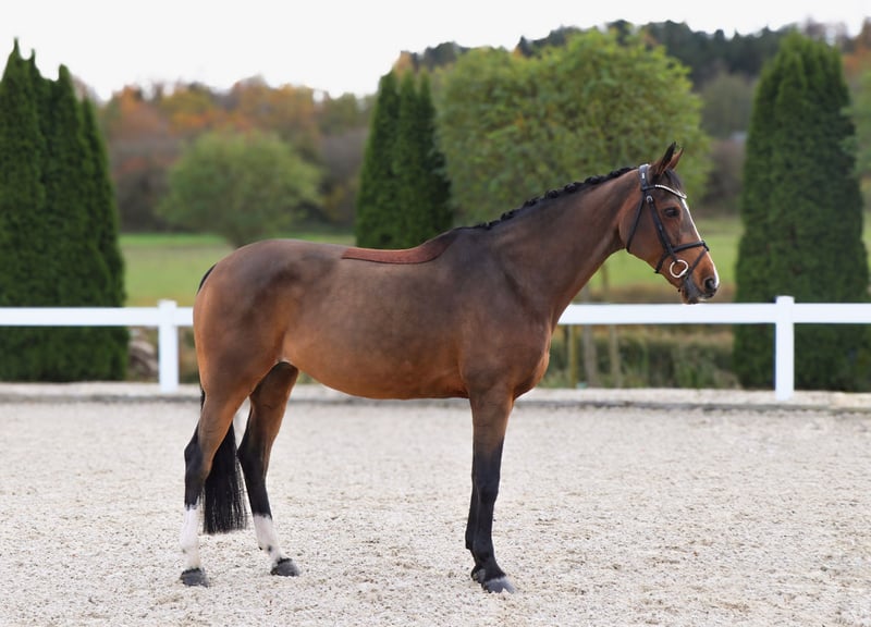 Obora is a wonderful all-round mare suitable for the whole family. She is very well-behaved and gentle in handling, easy for anyone to manage, and not at all spooky. She allows herself to be touched everywhere and by everyone, making her an excellent choice for children as well. Under saddle, she impresses with her calm temperament. Obora is not easily spooked and remains composed in various situations. She has a balanced amount of blood, providing a pleasant riding experience and exuding confidence, so you don’t have to worry about perfect seat placement. She has three excellent basic gaits and is an ideal schoolmaster. She is trained to L-level and can perform both flying changes effortlessly. The mare also enjoys jumping and shows a lot of enthusiasm. She crosses obstacles calmly and reliably, making her the perfect partner for pole work, gymnastics, jumping lessons, and small competitions. In the terrain, Obora is well-behaved and fearless. She moves politely both in a group and alone from the pasture and demonstrates a very confident and obedient attitude in all three gaits. She also handles road traffic without issues. We can easily see Obora as an all-rounder, especially suitable for families. Any ambitious rider looking to compete at higher levels or seeking a partner for relaxed hacks will find this horse to be a perfect match. Transport to her new home can be arranged without any problem! Due to the holiday season, it’s also possible to keep her with us for a longer period of free livery. Important notes: • Approximate height measurements are estimated and not precisely measured • All descriptions are subjective assessments by the seller and do not constitute guaranteed properties X-rays without findings are available, as well as a clean clinical examination. If you are interested or have further questions, please feel free to contact us by phone at 015140555583. We are available even on weekends and public holidays. A trial ride is possible at any time.