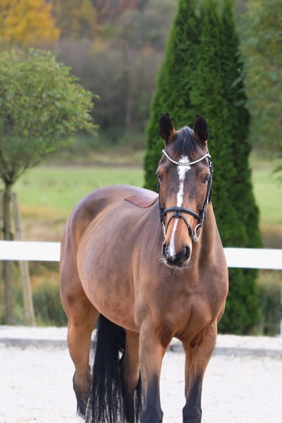 „Obora“ ist eine ganz tolle Allrounder Stute für die ganze Familie. Sie ist super brav und lieb im Umgang, von jedem zu Händeln und absolut nicht stutig, lässt sich überall und von jedem anfassen und ist daher auch super für Kinder geeignet. Beim Reiten überzeugt sie mit ihrem coolen Charakter. Obora ist nicht schreckhaft und lässt sich nicht so schnell aus der Ruhe bringen. Sie hat nicht zu viel Blut, wodurch sie ein angenehmes Reitgefühl vermittelt und viel Sicherheit ausstrahlt, da man nicht so aufpassen muss, ob man perfekt drauf sitzt. Sie verfügt über drei tolle Grundgangarten und ist ein ideales Lehrpferd. Sie ist auf L Niveau ausgebildet und springt ganz von alleine beide Wechsel. Auch am Springen zeigt die Stute, viel Freude, sie geht brav überall rüber und ist das ideale Pferd für Stangenstunden, Gymnastikarbeit, Springunterricht und kleine Turniere. Im Gelände ist „Obora“ brav und unerschrocken. Sie geht sowohl in der Gruppe als auch alleine anständig vom Hof und zeigt sich im Gelände sehr souverän und in allen drei Grundgangarten brav zu reiten. Auch Straßenverkehr ist kein Problem. Wir können uns Obora sehr gut als Allrounder vorstellen, ebenfalls super für Familien. Jeder ambitionierte Reiter, der sowohl am gehobenen Reitsport teilnehmen möchte, als auch ein Partner zum entspannten ausreiten sucht, kommt mit diesem Pferd auf seine Kosten. Das Organisieren von einem Transport ins neue Zuhause ist kein Problem! Aufgrund der Urlaubszeit ist es kein Problem, das Pferd noch länger bei uns in Beritt zu lassen (kostenlos)‼️‼️‼️ Wichtige Hinweise: • Stockmaß-Angaben sind geschätzt und nicht exakt nachgemessen • Alle Beschreibungen sind subjektive Einschätzungen des Verkäufers und keine zugesicherten Eigenschaften Röntgenbilder ohne Befund sind vorhanden, sowie eine einwandfreie klinische Untersuchung. Bei Interesse und weiteren Fragen melden Sie sich gerne jederzeit telefonisch unter 015140555583. Wir sind auch am Wochenende und an Feiertagen erreichbar. Ein Probereiten ist jederzeit möglich.