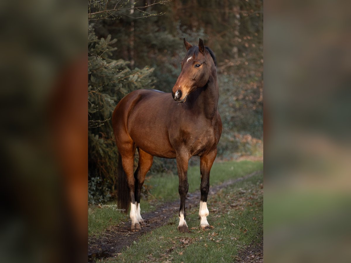 Für meine Joy (geb. 23.05.2011 / 1,60m) suche ich ein neues zu Hause bei einem pferdeerfahrenen Menschen - die berühmte Nadel im Heuhaufen - jemand, der Freude an einem charakterstarken Pferd mit großem Lernwillen hat. Joy ist eine sensible, selbstbewusste Stute, die eine klare, ruhige und faire Führung braucht. Wer ihr Sicherheit gibt und seinen Standpunkt souverän und ohne Härte vertreten kann, bekommt ein motiviertes Pferd, das mit seinem Menschen durch dick und dünn geht. Hat sie Vertrauen gefasst und ist in ihrer Herde angekommen, ist sie für jeden Spaß zu haben. Im Mai 2025 bekam sie ihr erstes Fohlen, welches Mitte Dezember abgesetzt wurde. Aktuell befindet sie sich im Aufbautraining, da die Aufzucht sie körperlich gefordert hat. Joy ist geritten, wurde jedoch die letzten zwei Jahre aufgrund einer Verletzung meinerseits nicht geritten. Wir starten gerade langsam und haben bis dato schon 4x wieder drauf gesessen. Dieses macht sie auch ohne Probleme mit. Sie geht alleine wie auch in der Gruppe ins Gelände. Auch Spaziergänge im Dunkeln sind kein Problem. Früher sind wir gemeinsam viel im Gelände unterwegs gewesen. Unter anderem haben wir für Distanzritte trainiert. - daran hat sie große Freude. Zudem haben wir viel Boden-/Freiarbeit und kleinere Spielereien in unsere Arbeit integriert. Ich wünsche mir für Joy einen Platz im Offen- oder Aktivstall, idealerweise in einer größeren Herde. 24/7 Weide ist für sie gut verträglich. Joy bringt zwei gut gemanagte Themen mit: - beidseitiger Spat (ohne Auffälligkeiten - darf nur kein aktives Springen mehr) - Stauballergie (bei passender Haltung/Fütterung symptomfrei) Weitere Eckdaten: - barhuf - regelmäßig entwurmt - geimpft (Tetanus, Influenza, Herpes) - jährliche Zahnkontrolle - osteopathische Betreuung vierteljährlich bzw nach Bedarf Ich gebe Joy ab, da sich meine beruflichen Ziele verändert haben und ich ihr zeitlich dann nicht mehr gerecht werden würde. Joy ist seit 10,5 Jahren an meiner Seite, daher wünsche ich mir einen langfristigen Platz mit Herz, Verstand und Geduld. Ich freue mich von dir zu hören und bin selbstverständlich für jegliche Fragen offen :) Platz vor Preis (Ich möchte ein tolles zu Hause für meine Stute und mich nicht bereichern)/ Ihr ganzes Zubehör kann mit erworben werden