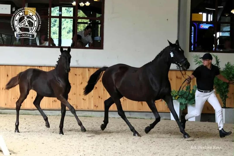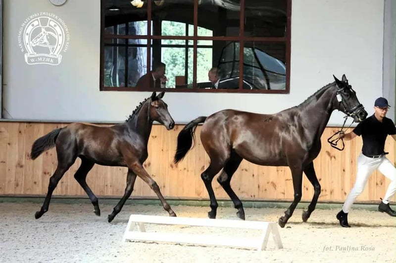 Vends une pouliche née en avril 2025, répondant aux exigences du pedigree POZG pour les chevaux de la région de Wielkopolska. Elle est régulièrement vermifugée et détartrée. Cette pouliche a obtenu la 5e place au XXIIIe Championnat Warmie-Mazovie des poulains de races nobles, ainsi que le titre de meilleure pouliche de race wielkopolskie (toutes les notes supérieures à 8 ; 9,1 pour le type). Pedigree : Père – SOKÓŁ (Powój x Szaman x Gosler) a terminé le test de bravoure en place 3 (DB). Mère – ASTENA (Eloquent trk x Hamlet Go trk x Kerman) a passé le test de bravoure avec une note DB. Grand-mère maternelle – Asta, mère de chevaux confirmés en compétition : Asterix (1er au MPMK-B 6 ans, GP), Asam (CIC**), Aztec (CIC**), Asesor (120), Astat (120). À côté, en 2e position, se trouvent des demi-sœurs (par Paco et Czarczaf).