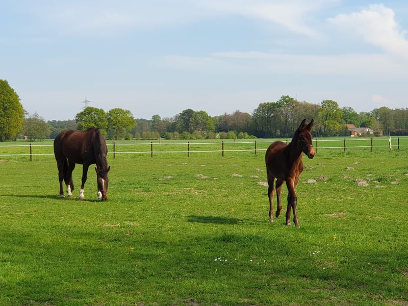 We are saying goodbye to our beloved Donna. She is approximately 20 years old, about 1.75 meters tall, and has a gentle temperament that makes her easy to handle. Donna is no longer suitable for riding. Additionally, she is only conditionally suitable for breeding, as she tested WFFS positive. In her youth, Donna participated twice in the Bundeschampionat and boasts an excellent pedigree. She is farrier and loading trained. This year, Donna served as a nurse mare for foals, so we are only placing her in loving and caring hands. - No slaughter offers - No traders