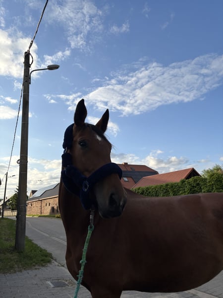 For sale: promising 4-year-old mare ✨ This mare is a daughter of the renowned stallion Poker de Mariposa, a horse of excellent pedigree sired by Nabab de Rêve and Ilena de Mariposa. She is a naturally talented jumper with excellent technique, strength, and style. She inherits elegance and athletic potential from her sire. The mare comes from a breeding farm near Wigramy. In 2024, she was evaluated with a TUV score of Very Good (available for review). She has been ridden in all three gaits, works well under saddle, and has recently begun jumping. She has a very good conformation, beautiful movement, and a pleasant temperament. A future-oriented horse for high-level sport. Possibility to purchase with tack. More information and photos via private message.