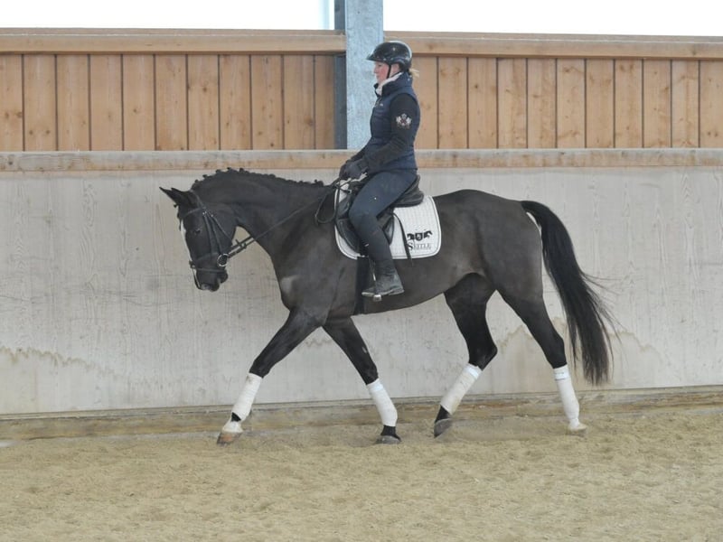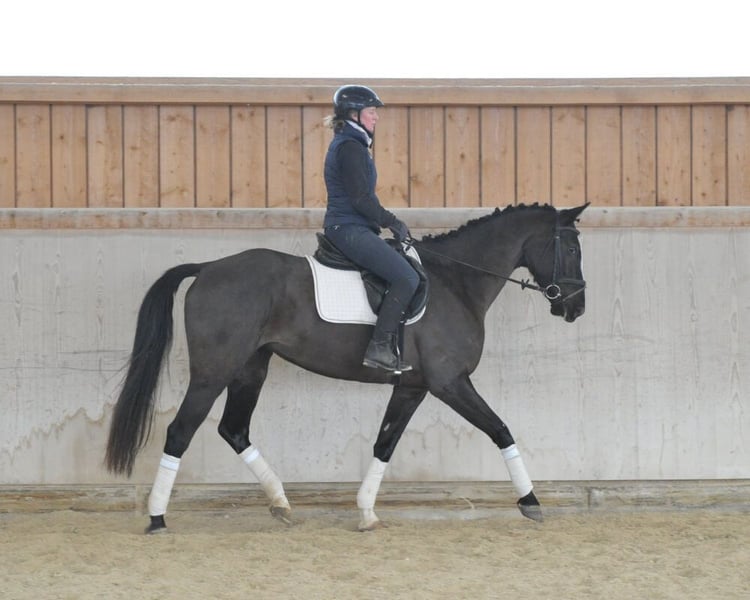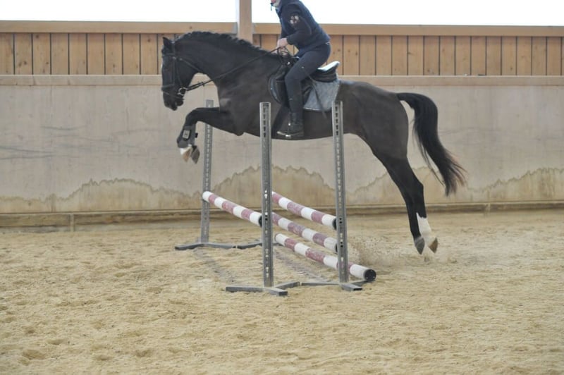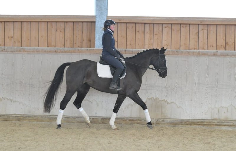 Bezaubernde Rappstute mit absolut liebenswertem Charakter. Unkompliziert in ihrer ganzen Art. Bereits auf dem sicherem Weg zu A-Niveau. Mit Geländeerfahrung, leicht zu händeln. Mit viel Vorsicht und Vermögen am Sprung. Ausgeglichen und liebenswert lässt sich die bezaubernde Lady nicht so leicht aus der Ruhe bringen.