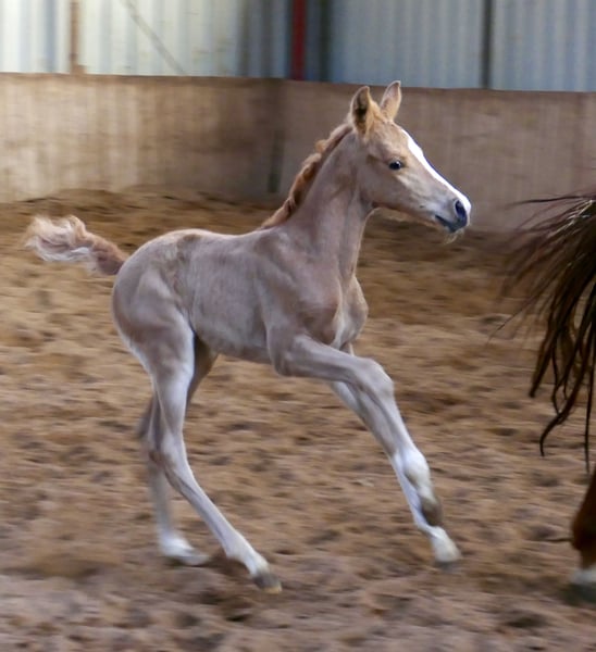 Heute sind neue Bilder von unserer bezaubernden Palomino-Prinzessin Marylin Gold entstanden. Die Tochter von Michelangelo x Ismo verzaubert nicht nur mit ihrer goldenen Farbe, sondern auch mit beeindruckender Bewegungsqualität und viel natürlicher Athletik. Sie bringt alles mit, was man sich für eine spätere Karriere im Vielseitigkeits- oder Springsport wünscht.