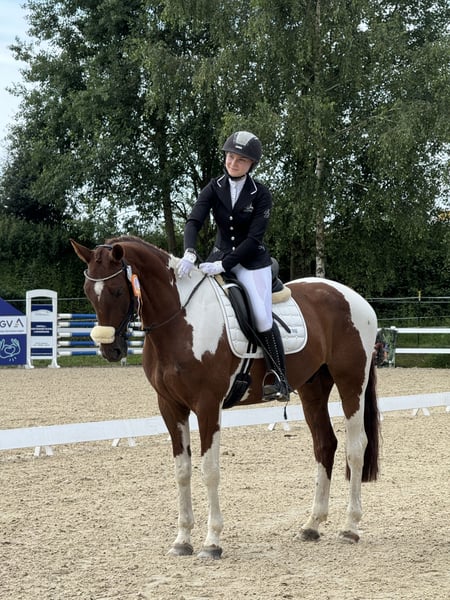 Manchmal passen die Ansprüche von Pferd und Reiter an die gemeinsame Arbeit leider nicht zusammen, weshalb ich entschieden habe, für meinen Wallach nach fast 6 gemeinsamen Jahren ein neues Zuhause zu suchen. „Leo“ ist ein 05/2016 geborener, 1,70m großer Fuchsschecke vom Zuchtverband Stud-Book Luxembourgois du Cheval de Sang (C.S.L). Er ist 2019 zur Ausbildung an den Stall gekommen, an dem ich mit meinem Senior stand. Dort hat er die Basics gelernt und wurde angeritten. Ab Mai 2020 habe ich mich um seine weitere Ausbildung gekümmert und ihn im November übernommen. Seitdem hat er alles schonend kennengelernt, was ein Reitpferd kennen sollte: Hufschmied, Tierarzt, Hängerfahren, Gelände alleine und in der Gruppe, Springen & Dressur zuhause wie auch Auswärts, Turniere, Straßenverkehr, etc. Als ich ihn damals gekauft habe, war er meine Hoffnung, wieder aktiv in den Reitsport einsteigen zu können und mich zu verbessern. Je weiter wir mit der Ausbildung kamen, desto deutlicher hat sich auskristallisiert, dass er dem Druck mental nicht standhält. Leo ist ein sehr sensibles, meinungsstarkes, charakteristisches Pferd. Er liebt lange Ausritte und Bodenarbeit mindestens genauso sehr, wie ein moderates Training. Daher würde ich ihn als sportliches Freizeitpferd bezeichnen, als reiner Sportler ist ihm der Druck zu hoch, als reines Freizeitpferd würde er jedoch eingehen. Er ist sehr schlau und will auch geistig gut ausgelastet werden. Ich habe ihn in der Dressur bis in die Klasse A** ausgebildet, bis A* ist er auf dem Turnier platziert. Im Springen sind wir meistens auf E Niveau unterwegs, was aber nicht an mangelndem Vermögen liegt, sondern an meiner Unsicherheit. Er ist für jeden Spaß zu haben, egal ob ohne Sattel, Gebisslos oder nur am Halsring, Leo lässt sich problemlos arbeiten und macht so sogar kleine Sprünge. Er braucht jedoch einen erfahrenen, sicheren Reiter, da er ein kleiner Angsthase ist und schnell unsicher wird. Auch seine mentale Überforderung äußert er in extrem schreckhaftem Verhalten. Ich würde mir einen ambitionierten Freizeitreiter für ihn wünschen, der ihn abwechslungsreich trainiert, vorrangig aber einfach eine gute Zeit mit ihm haben möchte und entsprechend seiner Bedürfnisse das Training anpassen kann. Er ist ein sehr soziales, aber ranghohes Pferd. Die optimale Haltung wäre eine kleine Offenstallherde ggf. mit nachts Box. Platz vor Preis, wird nur verkauft, wenn alles zu 110% passt