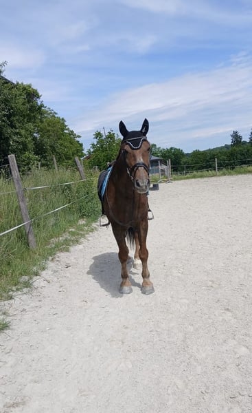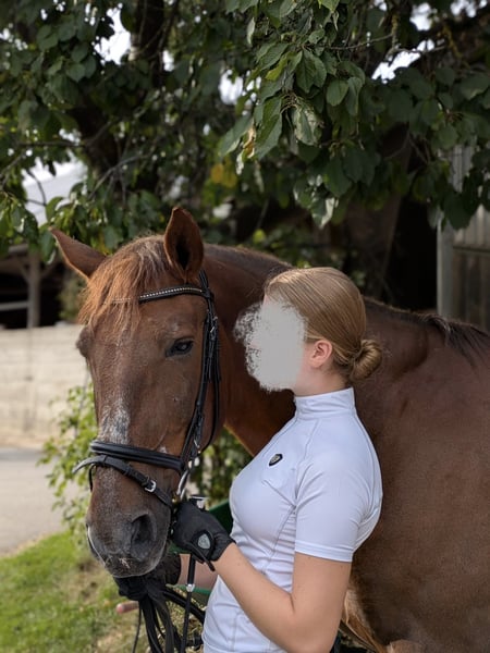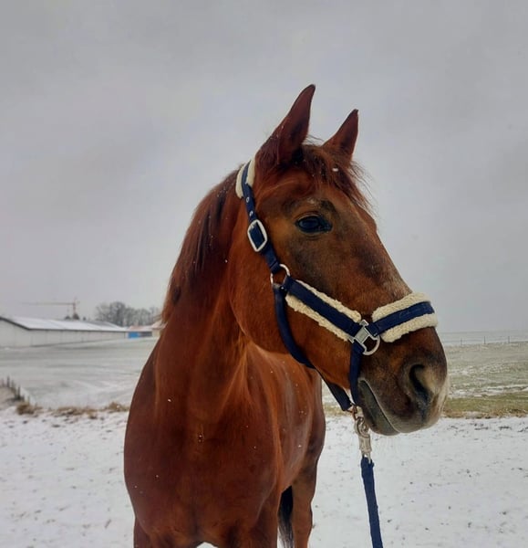 Schweren Herzens müssen wir uns von unserem beliebten Lord trennen. Wir haben vor ca 1 Jahr Lord für unsere Reitschule gekauft. Lord ist ein ungarisches Warmblut ca. 1,60m groß und 11 Jahre alt. Bereits von Anfang an eroberte Lord mit seinem Charakter die Herzen aller Reitschüler. Er wird im Schulbetrieb von Fortgeschritten aber auch Anfängern geritten. Er ist immer motiviert und fleißig. In der Halle und am Platz kennt er auch Stangenarbeiten und Bodenarbeit. Die Leidenschaft von Lord ist das Gelände. Er ist dabei unerschrocken, Verkehrssicher und blüht richtig auf im Gelände. Er führt auch gerne die Gruppe in allen Gangarten an oder lässt sich auch hinten nach reiten. Auch die Kleinsten können Lord herum führen und reiten. Lord ist ein wahrer Schatz. Am liebsten steht er in der Herde auf der Koppel und ist dabei eher rangniedrig. Leider hat sich nach längerer Zeit heraus gestellt, dass für Lord der Schulbetrieb eine zu starke Belastung ist. Wenn er öfter eingeteilt wird beginnt er leider zu ticken. Grund dafür sind vermutlich die beidseitig verkürzten Sehen in den Vorderbeinen. Wir wünschen uns für Lord jemanden der seinen wundervollen Charakter schätzt und einfach Freude mit ihm hat. Lord kann immer noch im Gelände geritten werden, freut sich über Ausritte oder Spaziergänge und Bodenarbeit. Wir hoffen sehr dass wir für Lord einen passenden Platz mit viel Herz finden.