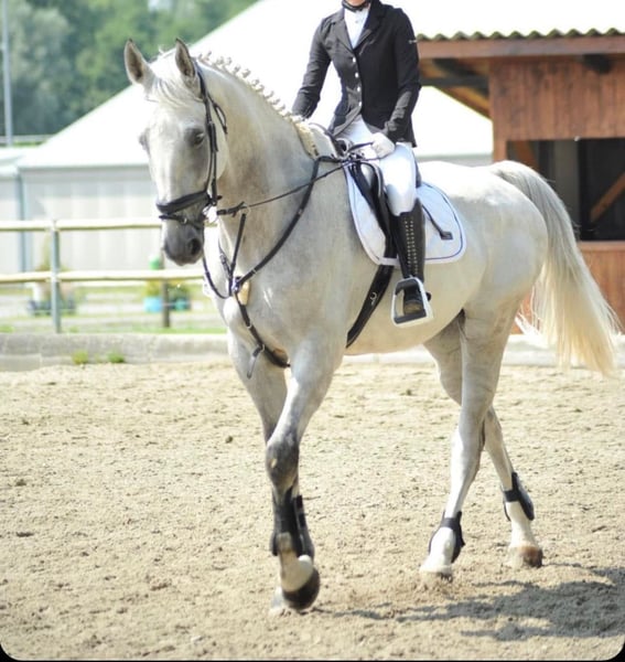 Due to retirement from competitive riding, Quando is now for sale. Quando is a honest and reliable leisure partner with a pleasant temperament. He tends to be on the sturdier side and is therefore not entirely suitable for beginners, but he is always easy to handle. Unwanted behaviors such as rearing or bucking are foreign to him. Given his size, he should be regularly and correctly gymnastic-trained, which he responds well to when worked with appropriately. He has already been ridden by a young girl, with whom he completed a basic dressage test. Additionally, he has competed in three events with us, consistently demonstrating good manners. Quando was also used in sport by his previous owner and competed up to class 125 at competitions. Quando is a horse that appreciates a steady handler who stays with him and is willing to forgive some minor mistakes. He is healthy and accustomed to box stall housing with turnout, as well as walking in a gaited machine. This year, he has not yet been re-trained after the winter break due to time constraints. Trial rides are, of course, possible. We look forward to receiving your inquiries for more information.