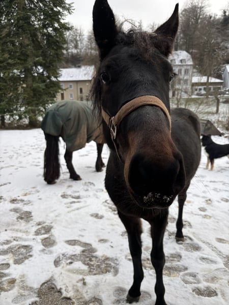 Mit schwerem Herzen, aber voller Zuversicht suchen wir für unseren jungen Wallach Solero ein liebevolles neues Zuhause. Solero ist 1,5 Jahre alt, roh und altersgerecht aufgewachsen. Er ist ein absoluter Schatz im Umgang: sehr lieb, extrem verschmust, dabei selbstbewusst, mutig und neugierig. Er möchte immer dazulernen und zeigt sich Menschen gegenüber offen und interessiert. Das Fohlen-ABC beherrscht er bereits, er ist halfterführig und geht gern spazieren. Umweltreize kennt er gut – Kinder, Hunde, Traktoren und andere Alltagsgeräusche sind für ihn kein Problem. Dabei bleibt er gelassen und cool. Solero ist ein junger Wallach mit tollem Charakter und viel Potenzial, der sich bei weiterer liebevoller Ausbildung sicher zu einem großartigen Freizeit- oder Sportpartner entwickeln wird. Wir wünschen uns für ihn Menschen mit Herz, Geduld und Freude daran, einen jungen Rohdiamanten weiter zu fördern. Verkaufe nicht an Händler!