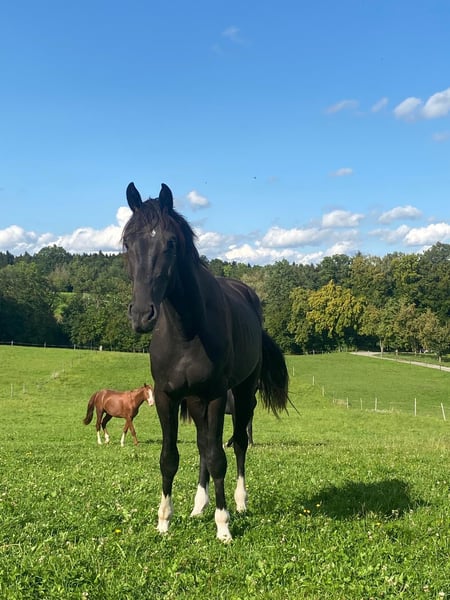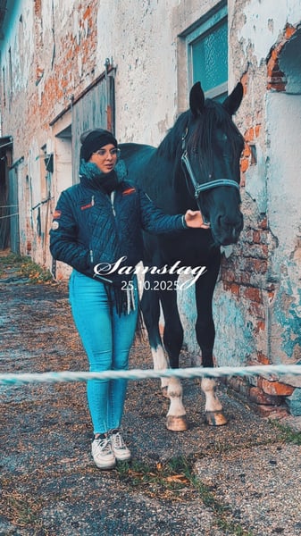 Van Tastico ist jetzt 2 1/2 Jahre alt und frisch von der Aufzucht zurück. Wir haben ihn direkt nach der Geburt gekauft. Sein Vater ist Van Austria, sein Großvater mütterlicherseits ist Ahonen, 2005 geboren und auf Rimondo anzusehen. Dressur bis M platziert und noch aktiv im Springen mit seinen 20 Jahren. Seine Grundgangarten sind toll, er ist kein Würschtl und wird im Viereck auch zeigen können was er hat. Auf seinem Konto sind schon mehrere Vorstrafen wegen unaushaltbarer Schnuckeligkeit und zu freundlicher Art vermerkt. Van Tastico hat keinen Abstammungsnachweis weil Ahonen kein gekörter Hengst ist. Wir haben ihn aber trotzdem aufgrund der Abstammung gekauft. Er ist brav im Umgang, war mit zwei Freunden in der Aufzucht und ist derzeit in einem Offenstall zuhause, wo er noch etwas fertig wachsen darf. Wir haben uns in allem sehr bemüht seit seiner Geburt und er ist wirklich ein schicker schwarzer Kerl mit 4 weißen Beinchen und einem tollen und friedfertigen Charakter der noch nichts schlechtes erlebt hat. Da wir aber noch zwei weitere Pferde haben und drei einfach zu viel sind für einen Hintern der Vollzeit arbeitet, trennen wir uns von ihm, weil er sein ganzes Leben noch vor sich hat und es Menschen gibt, die von Beginn an alles selbst machen möchten. Natürlich besteht auch die Möglichkeit, ihn noch hier zu lassen damit er im Frühjahr die ersten Erfahrungen mit Sattel und Reiter bei uns macht. Bei Interesse einfach melden.