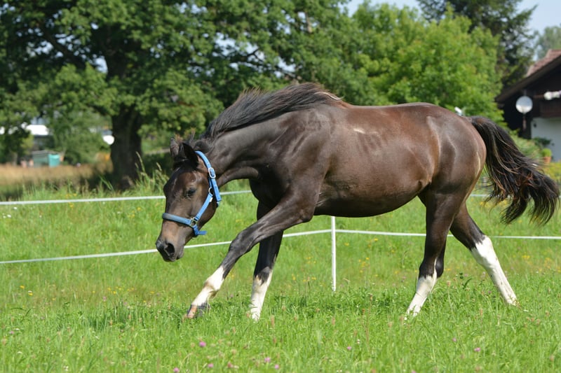 DATA & PEDIGREE: • Warmblood – Arabian – Crossbreed • Mother: Nonius Cross, Father: Partbred Arabian stallion "Norcal Sierra Snoman" • Born: April 27, 2023 • Harmonious conformation, correct foundation, final height approximately 16.0 hh • Very good hooves, easily navigates rocky terrain • Black-brown pinto – will turn grey with age • Calm, loving temperament, very affectionate and people-oriented, also very playful • Has successfully undergone treatment for a Gnat allergy (via ASIT immunotherapy) IT IS WITH A HEAVY HEART THAT I MUST PART WITH MY ADORABLE, LOVING GELDING TARAN. Originally, he was born as a playmate for the foal of my breeding mare, and I initially planned to sell him as a one-year-old. However, his loving nature quickly won me over, and I decided to keep him and continue his training. Now, I find myself at a point where I realize I lack the time to give him the attention and development he deserves. Therefore, I am looking for someone who can provide him with exactly that. Taran wants to please his human and works with great joy and motivation. Despite his young age, he already knows quite a lot: - **Trail riding:** I regularly took him out on walks and as a lead horse in all three gaits, always well-behaved and reliable, whether alone or in company. Even without herd contact, he remains calm and composed. - **Desensitization training:** Through targeted exercises, he remains relaxed around umbrellas, tarps, spray bottles, etc. He shows no fear when saddling or wearing cooling blankets. - **Groundwork:** I have worked with him on leading, forehand and hindquarter turns, sending away, loading, and some Parelli games. - **Lunging:** He is easily lunged, understands walk, trot, and side-passing. - **Transport:** He enters the trailer fearlessly and calmly. Additionally, Taran impresses with his beautiful appearance. As a black-brown pinto, he will gradually turn grey as he ages, being a mixed-color grey. With a final height of about 16.0 hh and his harmonious build, he is truly eye-catching. I place great importance on healthy, well-balanced hooves and have been trimming his hooves every four weeks from the start. To prevent errors, a professional checks his hooves every few months. Thanks to regular trimming, he has very strong, healthy hooves and moves easily over rocky ground. He is very well-behaved during trimming, as he has been accustomed to it since his first month of life. At six months old, he developed an allergy to gnats, which has been successfully treated with ASIT immunotherapy. Since then, he has been almost symptom-free and shows almost no itching at his mane and tail anymore. Otherwise, he has no health issues. I am happy to provide more details about his treatment in a personal conversation. He currently lives in a harmonious herd in an open stable with 11 other horses, fitting in very well. He is somewhat lower in rank and quite playful. If you are looking for a loyal lifelong partner—a horse that impresses with its cheerful, eager-to-learn, and heartfelt nature and can be shaped according to your own ideas—Taran will be your ideal companion. Additional photos, videos, and information, as well as viewing appointments, are available upon request at 0650 3904002.