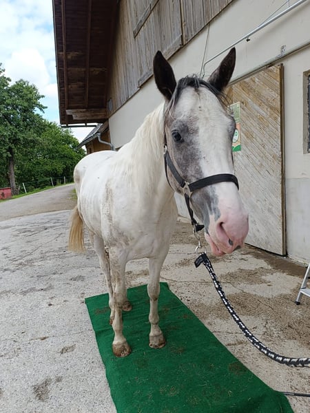 3j pinto mix wallach wegen zeitmangel zu verkaufen! hatt momentan ca ein stkm 156cm kennt bodenarbeit freispringen freiarbeit reitergewicht hufschmied und ist verladefrom. er ist ein motivierter neugieriges pferd das gefallen und arbeiten will. Aktuell in einen offenstall/robust haltung kennt aber auch box. preis is inkl zubehör VHB