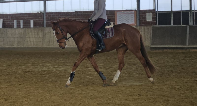 Manhattan est un cheval irlandais mesurant actuellement 1,65 m. Il s'adresse aux cavaliers ambitieux. Manhattan possède un potentiel pour la dressage, le saut d'obstacles ainsi que le concours complet. Ses allures sont bonnes, il est travailleur et extrêmement léger dans ses pattes. Pour son âge, il réalise déjà beaucoup de choses avec beaucoup de confiance. Il connaît le travail en manège, en carrière et, oui, il a également été monté en extérieur dans son pays d'origine, ce qui est toujours très précieux. :-) Manhattan est également un vrai trésor en termes de comportement. Un examen vétérinaire récent est disponible. Pour plus d’informations, n’hésitez pas à nous contacter au : 0177/2721831.