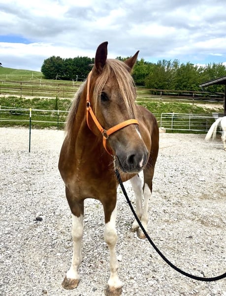 Onze knappe bonte ruin Timon gaat zowel alleen als in een groep het terrein in. Hij is bij ons regelmatig in de hal en op de buitenplaats gereden. Geweldig recreatiepaard! Hij is zeer braaf in de omgang, sociaal in de kudde, makkelijk bij de smid en tijdens het laden, en is bij ons regelmatig gevaccineerd en ontwormd. Voor meer informatie graag telefonisch contact opnemen via +43 664 48 11 903.