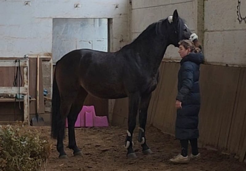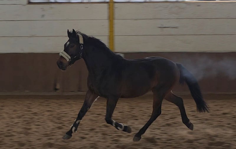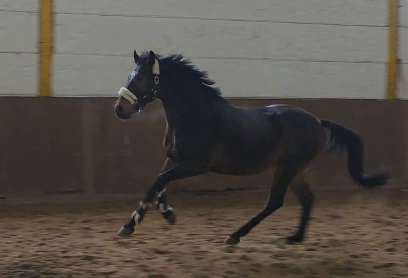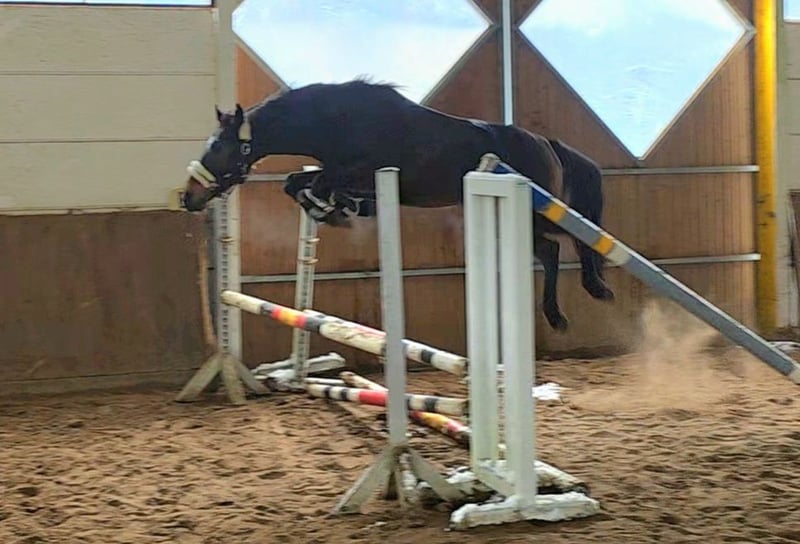 ✨ Ultimo – bildschöner Wallach mit Springtalent ✨ Ultimo ist ein bildschöner, handlicher Wallach, der mit seinem charmanten Auftreten sofort begeistert. Er ist leichtrittig, fein an den Hilfen und hat gute Grundgangarten. Beim Freispringen zeigt er eine tolle Manier, schnelle Reflexe, Vermögen und viel Übersicht. Unter dem Reiter absolviert er erste Kurzparcourse die sehr vielversprechend aussehen – ein Pferd, dass immer Freude bereitet mit Potenzial für mehr. Abstammungsmäßig ist die Springveranlagung über Heartbreaker und Pilot auch schon klar vorgegeben. Im Gelände ist Ultimo unerschrocken und anständig, egal ob allein oder in der Gruppe. Er kennt Boxenhaltung mit täglichem Auslauf in der Wallachgruppe. Auch im Offenstallhaltung kommt er gut zurecht. In den richtigen Händen sehe ich Potential im Springen bis etwa M . Zusätzlich ist er vielseitig einsetzbar. Ein echter Herzenspferd-Typ - einfach bildschön mit dem gewissen Etwas. Tolle Gelegenheit für jemanden , der sein zukünftiges Traumpferd noch selbst weiter formen möchte. 7j WB W, 1.61m , v. Upgrade ( Heartbreaker x Pilot), Klinische Aku vorhanden Video : https://youtu.be/y1qg0sW-GAs?si=0baXk5HWIlTdOBav https://youtu.be/O5Wj6eJB6Hc?si=VSLf8gb6cFc2NvJS Noch mehr Fotos, Videos und kleine Einblicke in den Alltag unserer Pferde gibt’s auf Instagram: [maresi_lange]. Schauen Sie gern vorbei und lernen Sie unsere Vierbeiner schon vorab ein wenig kennen. You can find more photos, videos and little insights into the everyday life of our horses on Instagram: [maresi_lange]. Feel free to take a look and get to know our horses a bit better in advance. Die Beschreibung des Pferdes beruht auf subjektiven Eindrücken und Erfahrungen unsererseits und ist keine Beschaffenheitsvereinbarung und Zusicherung von Eigenschaften. Probereiten erfolgt auf eigene Gefahr. Der Verkauf erfolgt im Auftrag. Für das Vorstellen/Probereiten des Pferdes erlauben wir uns, eine Aufwandsentschädigung in Höhe von 30 Euro zu berechnen. Diese wird natürlich bei Kauf des Pferdes verrechnet.