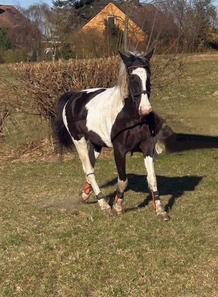 Dyngus (Pablo)- ein echter Eyecatcher (2019 geboren, mit einem aktuellen Stockmaß von 170 cm) mit wundervollem Charakter und vielfältiger Ausbildung. Pablo ist ein Traumpferd und das nicht nur durch sein Aussehen. Er überzeugt durch seinen sehr freundlichen, menschenbezogenen und verschmusten Charakter und tolle Gänge. Pablo ist ausgeglichen, lernwillig und gelassen. Der Wallach ist gesund (kleine AKU ohne Befund von 6/24 liegt vor). PSSM 1 n/n. Zurzeit steht er in einem Laufstall/Offenstall und ist verträglich mit Stuten und Wallachen. In der Herde ist er rangmittig. Er wird nicht in reine Boxenhaltung verkauft. Nachts Box ist okay. Artgerechte Haltung mit Sozialkontakt ist erwünscht. Pablo wurde vielseitig ausgebildet. Englisch und Western geritten, ebenso hat er eine Fahrausbildung (2-spännig) erhalten. Er besitzt eine solide Grundausbildung, geht sicher die Grundgangarten und Seitengänge wurden angefangen. Laufender Beritt und Unterricht bei Hugo Ferreira. Besitzt viel Geländeerfahrung und ist sehr trittsicher. Auf verschiedenen Kursen (Western: Speed Disziplinen, Working Equitation, Trail) konnte er viel dazulernen und zeigte sich in fremder Umgebung von seiner besten Seite. Verzeiht auch Reitfehler und reagiert auf feine Hilfen. Er ist ein super tolles Pferd, das nur Verkauft wird, weil das Hauptaugenmerk auf dem Fahrsport liegt und er sich doch stresst beim Kutschefahren.