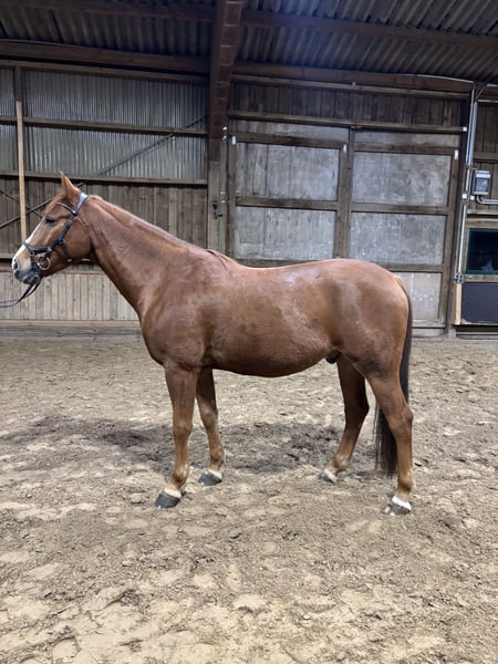 Albert ist ein sympathischer, 7-jähriger Warmblutwallach mit viel Herz und Arbeitswillen. Er wurde bisher im Schulbetrieb eingesetzt, zeigt dort aber deutlich, dass er lieber eine feste Bezugsperson möchte. Für erfahrene Reiter*innen, die Freude an konsequenter, feinfühliger Ausbildung haben, ist er ein spannendes Projekt und treuer Partner in Aussicht. Im Training zeigt Albert gute Ansätze bis A-Springen und E-Dressur, mit weiterer Förderung sicher noch ausbaufähig. Im Gelände ist er immer mit Freude dabei, allerdings noch nicht routiniert. Aufgrund seines sensiblen und zugleich starken Charakters suchen wir für ihn jemanden, der ihm Sicherheit, Vertrauen und die nötige Konsequenz geben kann. Albert ist regelmäßig geimpft und entwurmt ,es liegen keine bekannten gesundheitlichen Einschränkungen vor. Eine AKU wurde bisher nicht durchgeführt, kann aber selbstverständlich auf Wunsch veranlasst werden. Ein tolles Pferd für jemanden, der ein ehrliches Freizeitpferd mit Entwicklungspotential sucht und ihm die nötige Zeit und Zuwendung geben möchte. TEL.: 01601893211