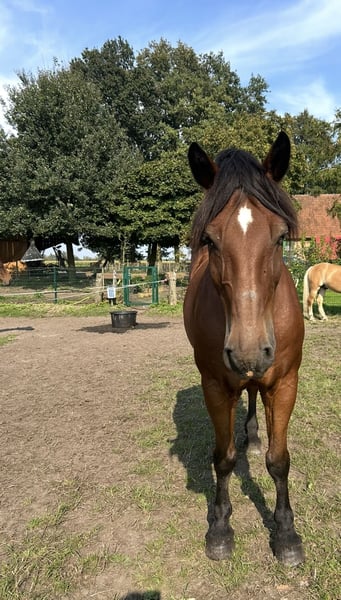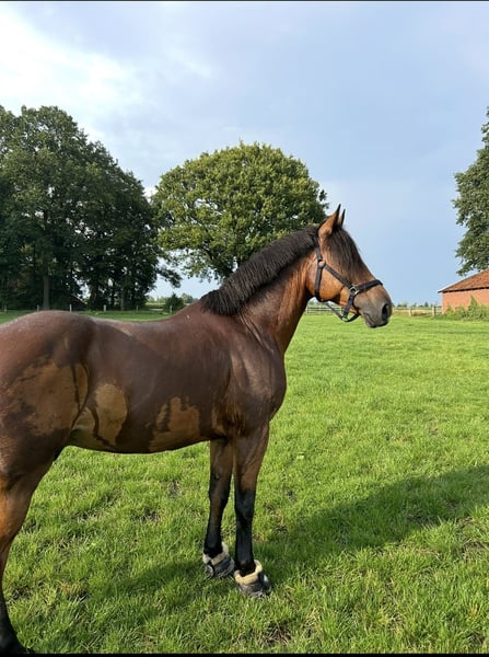 Bied, als ALLES klopt, mijn 9-jarige Warmbloed ruin te koop aan. Hij is absoluut braaf en in het terrein een 1000% veilige keuze. Hij kent honden, auto's, tractoren, kinderen... Ook het werk op de bak doet hij braaf mee en wil graag behagen. Ook minder ervaren ruiters komen goed met hem overweg! Hij is ook al door een 14-jarig meisje gereden. Bij de vorige eigenaren zou hij ook voor de wagen hebben gelopen, maar daar kan ik niets over zeggen. Bij ons staat hij samen met 4 ruinen en een merrie, absoluut geen probleem. Hij is eerder ranghoog, maar nooit gemeen. In de zomer staat hij 24/7 buiten op de wei, in de winter 's nachts op stal. Stal- of paddockhouderij komt niet in aanmerking! Natuurlijk regelmatig ontwormd en elke 6-8 weken bij de smid. Ik zou natuurlijk nog veel meer over hem kunnen schrijven… ☺️ Voor meer informatie graag persoonlijk. Ik kijk uit naar je aanvraag. Met vriendelijke groet!