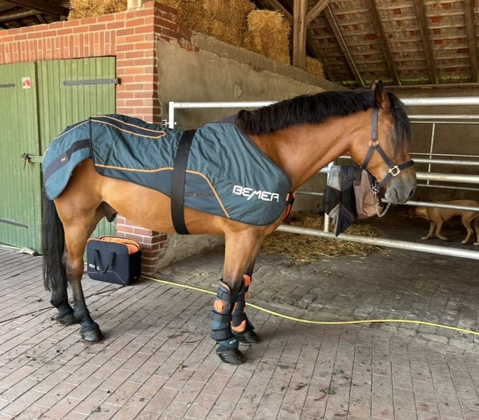 I am offering my 9-year-old Warmblood gelding for sale if everything fits. He is absolutely well-behaved and a 1000% reliable partner in the field. He is familiar with dogs, cars, tractors, children... He also works well in the arena and aims to please. Even less experienced riders get along well with him! He has also been ridden by a 14-year-old girl. His previous owners mentioned that he has also driven in harness, but I cannot confirm that. He is currently kept with 4 geldings and a mare, and there are absolutely no problems. He is rather dominant but never aggressive. In the summer, he is outside 24/7 in the pasture, and in the winter, he stays in the stable at night. Box or paddock housing is not an option! He is of course regularly dewormed and sees the farrier every 6-8 weeks. I could certainly write much more about him... ☺️ Feel free to reach out for more details. Best regards!