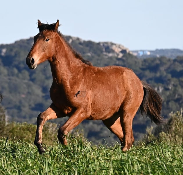 Dieser 03/2025 geborene Hengst, ist ein richtig robuster Rohdiamant! Sein Papa ist ein wunderschöner PRE x Menorquin Mix der mit seinen 22 Jahren noch topfit ist und eine eindrucksvolle Erscheinung. Sein 6jähriger Bruder ist 170cm groß und ein liebevoller, mutiger Charmeur. Seine 2 jährige Schwester (Bild) sieht mehr nach der Mutter aus, denn die ist eine reinrassige Menorquinstute, aus ganz alter Linie. Diese Mischung hat einen eleganten Youngster hervorgebracht, der den Mut und die Stärke von einem Menorquin mit sich bringt und das Exterieur mehr nach einem Spanier. Er darf auf über 40 Hektar Land, mit viel Steigungen und Felsen leben, was ihn durch die 24h Stunden Robusthaltung zu einem wirklich strapazierfähigem Pferd macht. Das sieht man auch an seiner Bemuskelung, den klaren Beinen und dem starken Rücken. Mama & Schwester sorgen für die Erziehung vom Jungspund, der ansonsten noch roh ist. Zum Absetzen war er in der Box und wurde halfterführig gemacht. Selbstverständlich wird er für den Transport wieder aufgefrischt ;) Sein zu erwartendes Endmaß wird um die 170cm liegen und durch seine tolle Bewegung wird er für viele Sparten interessant. Geländegängig ist er auf jeden Fall schon zu 100%, denn selbst der Geländewagen hatte Mühe, die steinigen Wege mit viel Steigung zu erklimmen, die der Bub mühelos und elegant bewältigt. Ein günstiger Nachwuchshengst mit Potenzial in vielen Sparten! Er hat einen Equidenpass und ist somit papiertechnisch auch reisefertig. Für all jene, die ihn erst später holen möchten, besteht die Möglichkeit auf einen Aufzuchtsplatz vor Ort. Videos und Abstammung gerne auf Anfrage. Sein Standort ist Menorca. Gerne organisiere ich vor Ort eine Fohlen-AKU,Transport oder auch ihre Reise, solltest du persönlich zum Anschauen kommen. Details dazu gerne auf meiner Seite oder im Gespräch. Saludos aus Spanien