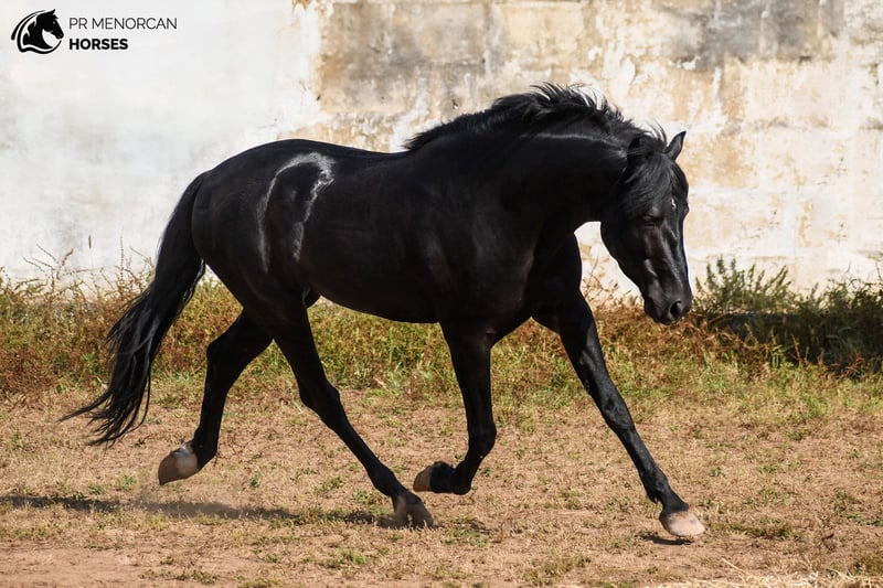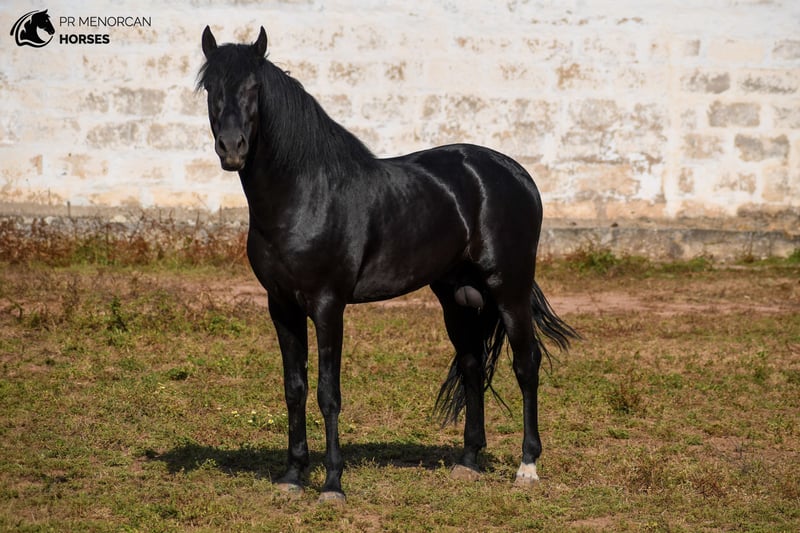 ste elegante semental de Pura Raza Menorquina, nacido en 2021, está buscando su nuevo hogar. De capa negra con un encantador calcetín blanco en la pata trasera izquierda, mide 162 cm y tiene una genealogía destacada: hijo de un reconocido semental premiado por morfología y funcionalidad, y por línea materna descendiente de la prestigiosa línea Dubin. De carácter tranquilo y equilibrado, conoce todo el manejo básico. Está domado en doma clásica y doma menorquina, con inicios en paso español y el tradicional bot menorquín. Además, también sabe ir enganchado. Es seguro para montar en exterior y se comporta correctamente con otros caballos. Desparasitado, vacunado y acostumbrado al herrero. Ubicado en Menorca Organizamos examen veterinario, documentación y transporte a cualquier parte del mundo. Escríbenos por privado para más información y vídeos.