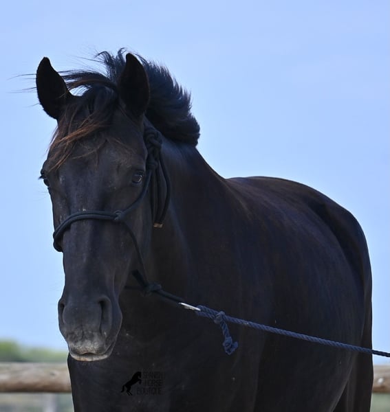 Der treue, feine und liebe Blick dieser reinrassigen, 2023 geborene Menorquinstute, erzählt schon einen Großteil über sie! Sie ist eine ganz liebe, ruhige, artige und feine Nachwuchsstute, die alles recht machen möchte und immer aufmerksam bei der Arbeit und im Umgang ist. Sie lebt im Herdenverband und dank des rauen Klimas und der felsigen Böden, hat sie harte Hufe und klare Beine. Apropos Beine, wer ganz genau hinschaut, sieht, dass sie an einem Hinterbein ein kaum ersichtliches, weißes Abzeichen hat. Ansonsten ist sie komplett schwarz, wie es im Zuchtziel erwünscht ist. Sie geht schon sehr brav an der Longe mit Halfter, ansonsten ist sie altersbedingt natürlich noch roh. Durch ihre Adern fließt Blut aus ganz alten Linien des Menorquin, die für ausdauernde, mutige und arbeitswillige Pferde stehen und auch diese Qualitäten, bringt sie alle mit! Sie ist kurz und wendig, was sie später für viele Sparten interessant machen wird! Aktuell misst sie um die 159cm und ihr Endmaß wird leicht über 160cm liegen. Videos und Abstammung gerne auf Anfrage. Ihr Standort ist Menorca. Gerne organisiere ich vor Ort eine Fohlen-AKU,Transport oder auch ihre Reise, sollten Sie persönlich zum Anschauen kommen. Details dazu gerne auf meiner Seite oder im Gespräch. Saludos aus Spanien