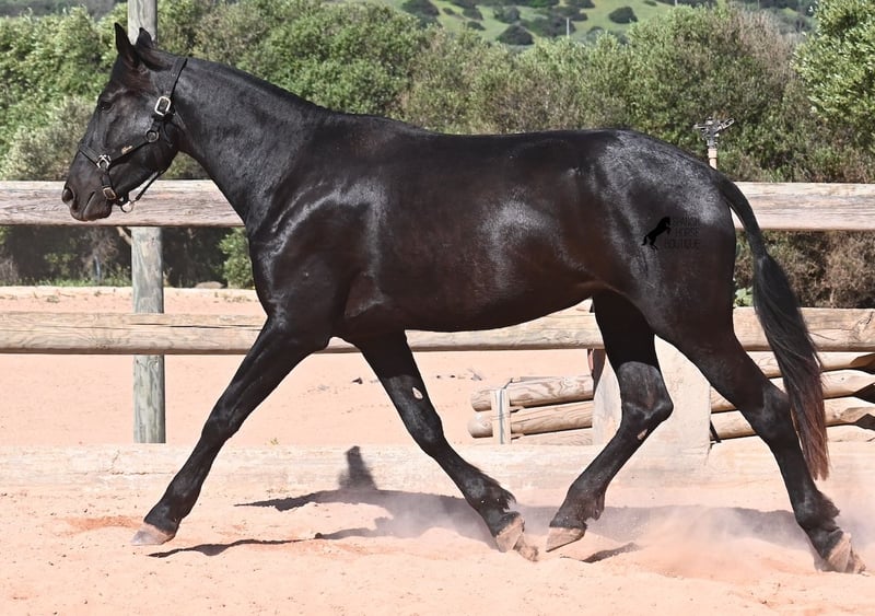 Diese 2023 geborene, reinrassige Menorquinstute, will definitiv hoch hinaus! Denn gerade mal 3 Jahre alt, misst sie schon erstaunliche 167cm und wird demnach bis sie ausgewachsen ist, definitiv an der 170cm Marke kratzen. Ganz stolz und lebenslustig fegt sie über den Platz und zeigt ihren charmanten Esprit. Dabei bewegt sie sich auch wirklich gut und mit ihrem Charakter und der Bewegung, wird sie später nicht nur für den Freizeitbereich, sondern auch für die Dressur und Working Equitation interessant. Ihr Papa ist ein herausragender Hengst, denn 3 (!) seiner Nachfahren wurden RASSECHAMPION! Also hat diese Stute ganz edle Geschwister und ist bestimmt auch für Züchter interessant, denn sie ist mütterlicherseits auch noch ein Abkömmling von BUYO, einem der Gründerväter der Rasse. Sie lebt in der Herde in 24h Robusthaltung, ist daher bestens sozialisiert und abgehärtet, dank des rauen Klimas auf Menorca. Im Umgang ist sie sehr aufmerksam und absolut artig und gesetzt, ganz ohne Jungpferdeflausen. Sie ist nun im idealen Alter, um mit ihr die Arbeit zur Vorbereitung als Reitpferd anzufangen. Es besteht auch die Möglichkeit vom Beritt auf Menorca. Sie ist noch nicht gekört, kann aber auch gerne angekört werden, für all jene, die Zuchtziele haben. Sie hat keine weißen Abzeochen und ist mit ihrer Größe eine Rarität bei den Menorquin. Aktuell steht sie auf Menorca! Videos und Abstammung gerne auf Anfrage. Gerne organisiere ich vor Ort eine AKU, Beritt, Transport oder auch ihre Reise, sollten Sie persönlich zum Anschauen kommen. Details dazu gerne auf meiner Seite oder im Gespräch. Saludos aus Spanien