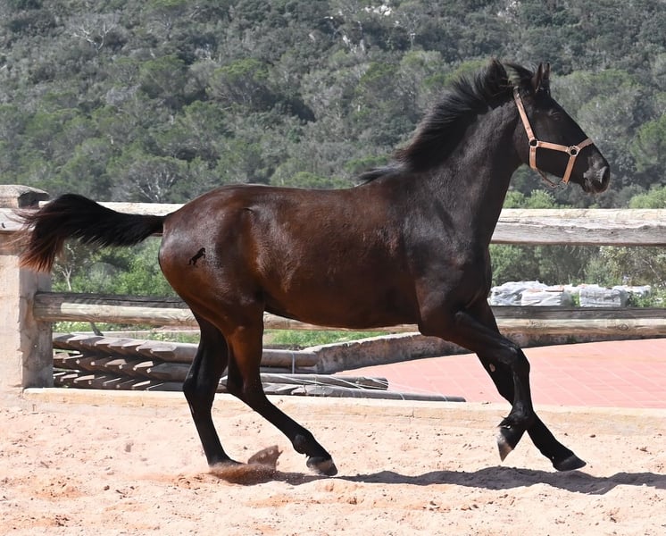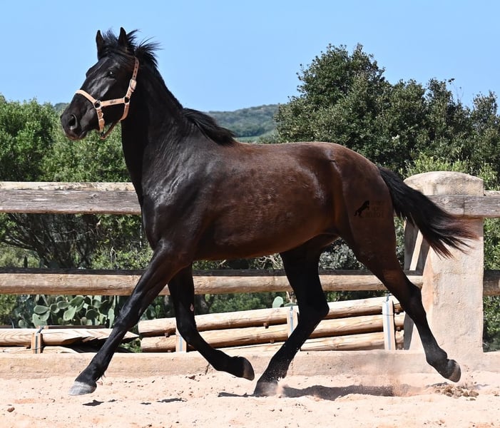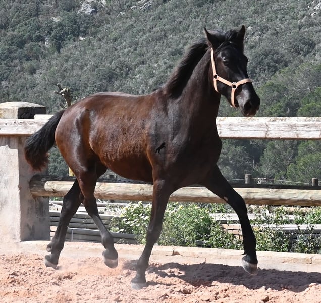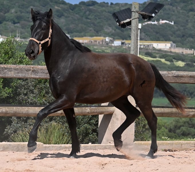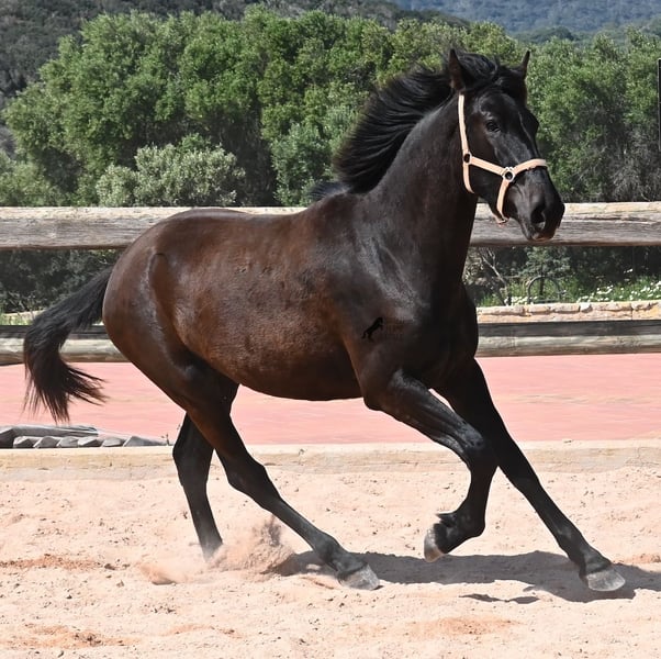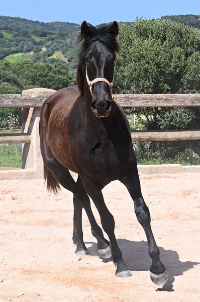 Cette jument pure race menorquine née en 2023 veut définitivement aller loin ! À seulement 2 ans, elle mesure déjà 164 cm et, une fois adulte, elle atteindra sans aucun doute la marque des 170 cm. Avec fierté et joie de vivre, elle s'élance sur la carrière et montre son esprit charmant. Elle se déplace également très bien et avec son caractère et son mouvement, elle sera intéressante non seulement pour les loisirs, mais aussi pour le dressage et l'équitation de travail. Son père est un étalon exceptionnel, car 3 (!) de ses descendants ont été CHAMPIONS DE RACE ! Cette jument a donc de nobles frères et sœurs et est certainement intéressante pour les éleveurs, car elle est également issue par sa mère de BUYO, l'un des pères fondateurs de la race. Elle vit en troupeau en pâturage 24h/24, ce qui lui permet d'être parfaitement socialisée et endurcie, grâce au climat rude de Minorque. Étant donné que de si grandes juments sont très rares chez les menorquins, son segment de prix est en conséquence pour une telle rareté. Elle est actuellement sur Minorque ! Des vidéos et son pedigree sont disponibles sur demande. Je peux également organiser sur place une visite vétérinaire, un débourrage, un transport ou même son voyage si vous souhaitez venir la voir en personne. Pour plus de détails, n'hésitez pas à consulter ma page ou à en discuter. Salutations d'Espagne.
