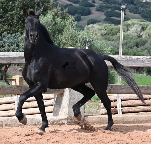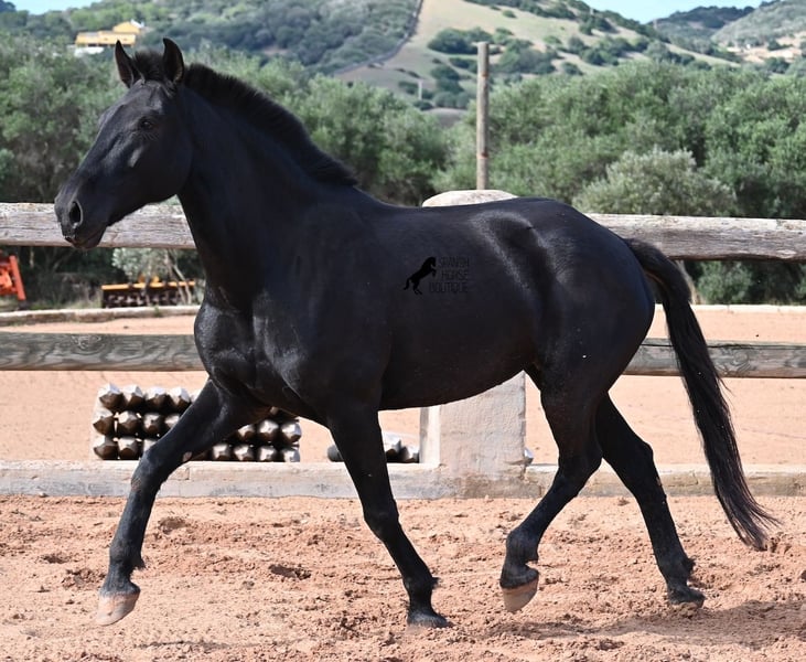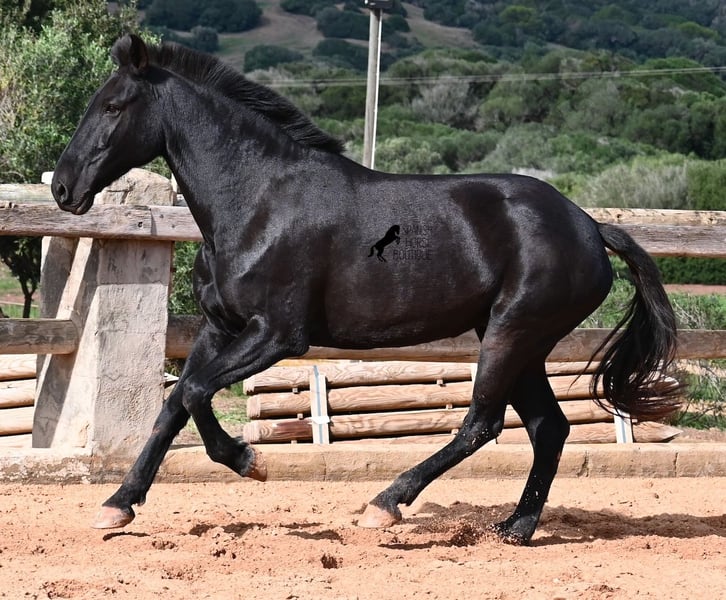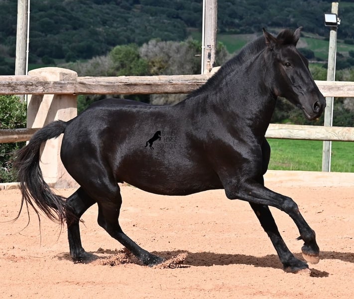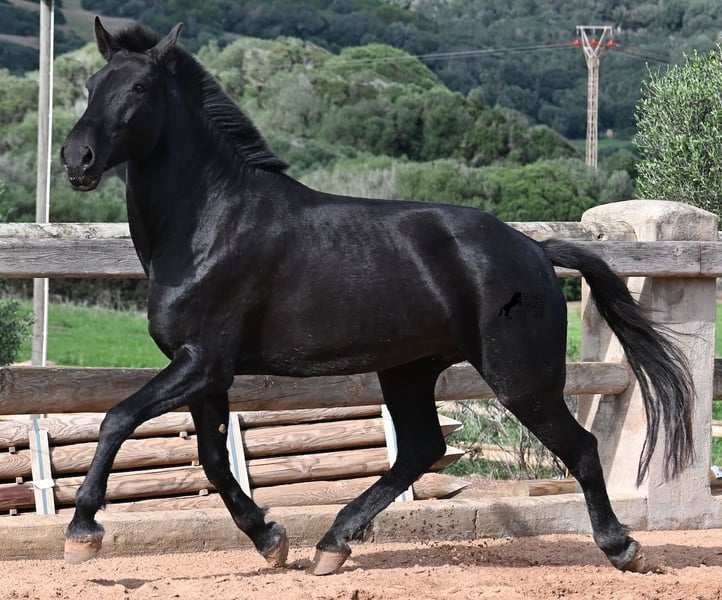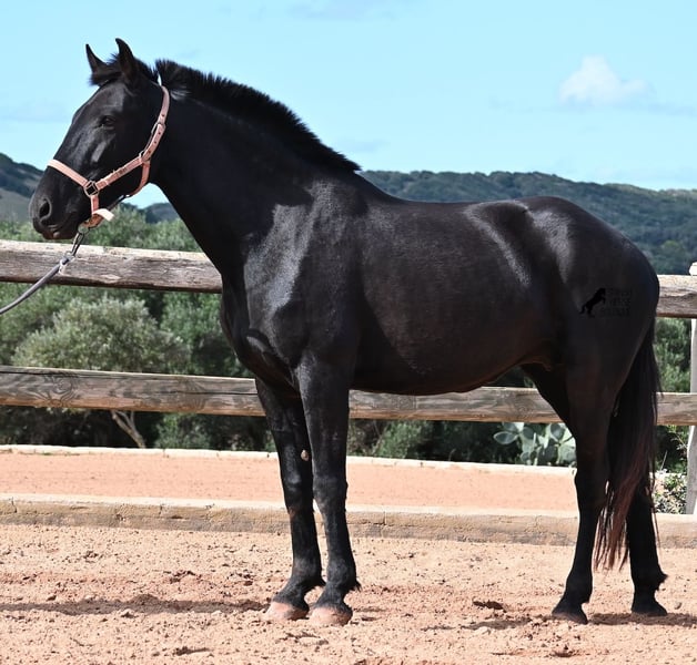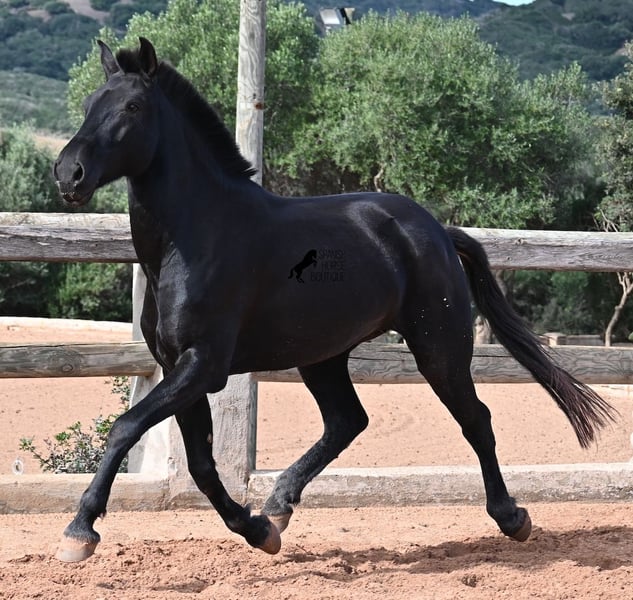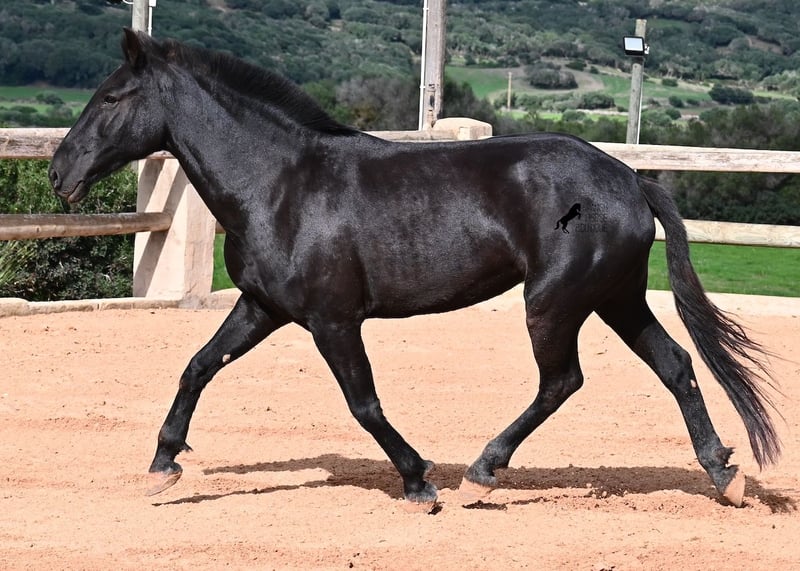 This 2017-born purebred Menorquín mare is in the prime of her life and at the perfect age to explore new paths. She is a licensed breeding mare and has foaled before, demonstrating her qualities as a mother. Currently, she is not in foal, so if desired, she can be started under saddle directly on-site, making her suitable for those who prefer not to train her themselves. Her movement is impressive and she will appeal to many disciplines—both as a riding and driving horse. For those interested in breeding, her pedigree is excellent, as her sire is one of only three elite stallions of the breed, from whom she inherited her very good movement. On her dam’s side, she descends from the original lines of Menorquín horses, known for producing particularly enduring and resilient animals. A classic English training approach can be organized on-site, as well as horsemanship training! She lives on many hectares of land in 24/7 turnout, making her very hardy and sure-footed. With a height of 160 cm and her baroque exterior, she is very harmoniously built and has no white markings. Videos and pedigree details are available upon request. Her location is Menorca. I am happy to arrange a veterinary examination, transportation, or her travel if you wish to view her in person. Further details can be found on my page or discussed directly. Greetings from Spain