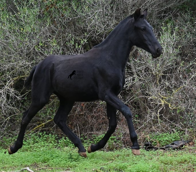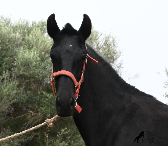 Diese im Februar 2025 geborene, reinrassige Menorquinstute, ist jetzt schon eine kleine, barocke Schönheit :) Bis auf einen ganz, ganz kleinen Stern auf der Stirn, ist sie komplett schwarz wie ihre Mama. Ihre Mama ist über 170cm groß und die Tochter eines RECOMENDADO Hengstes, der für seine herausragenden Dressurleistungen ausgezeichnet wurde. Der Papa der jungen Dame, war mehrfach bester Hengst der Rasse und hat alte Linien des Menorquin in sich. Sie lebt 24h in Robusthaltung bei Wind und Wetter- so auch bei Regen, daher war es etwas rutschig beim Fototermin. Die Box kennt sie auch, sowie Ezaun, was auf Menorca nicht selbstverständlich ist, da die Mauern sonst als Abgrenzung dienen. Sie ist sehr aufgeschlossen, kommt auch in der Herde auf einen zu und das liegt an ihrem pferdefreundlichen Absetzen. Denn sie hat den Menschen als Freund kennengelernt, lässt sich brav anbinden, aufhalftern, Hufe geben, duschen, verladen und es wurde sogar schon ein bisschen in Schritt und Trab am Stallhalfter longiert. Selbstverständlich ist sie regelmäßig entwurmt und kennt sowohl saftiges Gras, sowie Heu und Kraftfutter. Auch im Winter ist die Umstellung in ein neues Zuhause kein Problem, auch bei uns auf Menorca wird es frostig und sie hat bereits ein schön, dicht, plüschiges Winterfell. Solltest du sie erst später holen wollen, so kann gerne ein Aufzuchtsplatz für sie organisiert werden. Videos und Abstammung gerne auf Anfrage. Ihr Standort ist Menorca. Gerne organisiere ich vor Ort eine Fohlen-AKU,Transport oder auch ihre Reise, solltest du persönlich zum Anschauen kommen. Details dazu gerne auf meiner Seite oder im Gespräch. Saludos aus Spanien