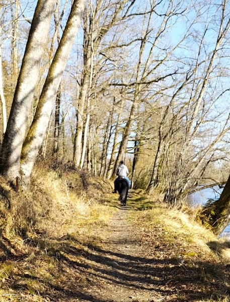 Jument pleine de promesses qui progresse rapidement en carrière comme en exterieur. Belle encolure et belles allures dont un pas franc en balade. Debourrée dans la confiance. Apprentissage de l'équilibre, du respect mutuel et de la légèreté. Equilibre spontané intéressant, bonne montée de garrot et bonne impulsion. Autonome en exterieur, pied sûr, à l'aise dans l'environnement J'inclus un accompagnement professionnel pour assurer la transmission des codes et/ou apporter la formation suffisante au nouveau propriétaire. Elle a grandi en montagne en troupeau. A jour des soins courants, dentiste, ostéo, parage, vermifuge. Pieds nus