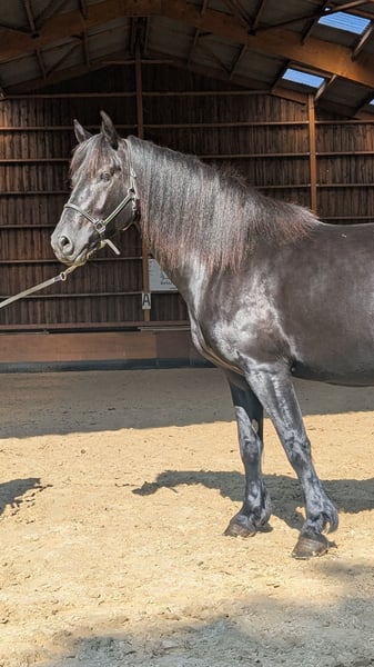 AZZY DES CIMES ✨ The perfect blend of presence and versatility ✨ Jazzy is more than just a mare: she is a reliable, willing, and sensitive partner, at the service of your desires… and your heart. She embodies the rare marriage of elegance and hardiness. With her intense black coat and harmonious movement, she immediately catches the eye. But it is her gentle and balanced temperament that makes her so endearing: attentive, reliable, and willing, she is the ideal companion for moments of connection. A prestigious heritage Coming from a renowned lineage, Jazzy des Cimes is the daughter of Ornoir du Souleilla Mer, a double champion of the Mérens breed, known for his power and charisma. In the arena? She performs with curiosity and serenity, showing great versatility for leisure, driving, or trail riding. Outdoors? Always calm and composed, Jazzy des Cimes is responsive and reassuring, a true pleasure for rides in nature. Alegria Education – Relationship of Complicity® Raised with respect for each horse's rhythm, Jazzy des Cimes has benefited from the Alegria – Relationship of Complicity® approach, where each interaction is designed to create a sincere and lasting connection. Gentle learning, attentive listening, and positive education make her a receptive and engaged partner, ready to forge a strong bond with her future rider. ✨ A mare like Jazzy is not looking for an owner. She awaits a sincere encounter. --------------- ALEGRIA – Find the horse of your dreams and create a unique relationship based on trust and complicity. At Alegria, we know that buying a horse is much more than just a transaction. It’s about finding a life partner with whom you will build a strong and fulfilling relationship. We offer expert support at every step, so you can make an informed choice and embark on this adventure with peace of mind. Why choose Alegria? Personalized support to guide you in your choice. We help you find the horse that matches your personality, expectations, and skills, so that the relationship you build with him is smooth and natural. ✨ Our team of experts advises, guides, and supports you in your process to ensure you make an informed choice without rushing. Horses raised in an environment conducive to their well-being. Our horses are raised in exceptional conditions, where they benefit from gentle and respectful education, based on our exclusive "Relationship of Complicity" method. Each horse is prepared to be a reliable, responsive, and balanced partner, ready to build a trusting relationship with you. Quality care to ensure optimal health. The well-being of our horses is paramount. They are regularly monitored by animal health experts: veterinarians, osteopaths, farriers, and dentists. This medical follow-up ensures that your horse will be in top shape, ready to start this new relationship with you under the best conditions. Transparent follow-up through progress sheets. Each horse benefits from a detailed progress sheet that allows you to know its exact level, strengths, and character. This transparency provides you with all the keys to choose the horse that will meet your expectations and the relationship you wish to build with him. Continuous support to succeed in this relationship. At Alegria, we believe that a lasting relationship is not improvised. That’s why we remain by your side after the purchase, with personalized follow-up to help you build true complicity with your horse. Through our in-person and online training, you will learn to better understand your horse and strengthen the foundations of your relationship. Testimonials from satisfied clients. We have supported hundreds of riders in their projects. 100% of our clients are satisfied with the support and the relationship they have built with their horse. Their testimonials are the best proof of the quality of our work and the success of the relationships we foster. Find the horse that meets your expectations. Discover our selection of exceptional horses now and start imagining the relationship you will create with him. Check the progress sheets and let our team of experts guide you to find the horse that meets your expectations. Discover our selection of horses at www.alegriacomplicite.com and start building the relationship of your dreams. Alegria – Find the horse that suits you and create a relationship based on trust and complicity.