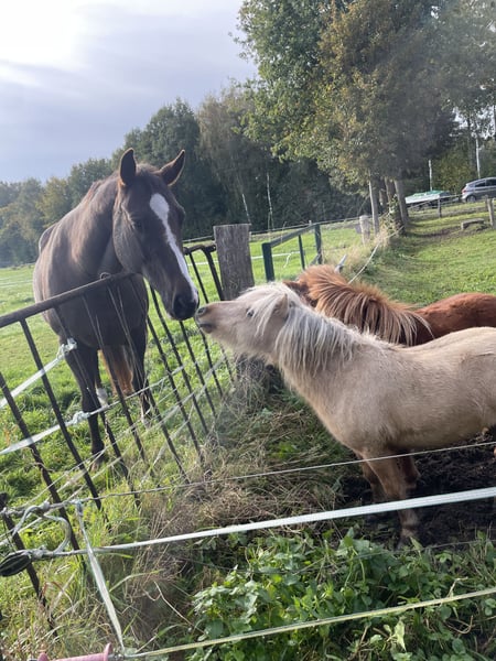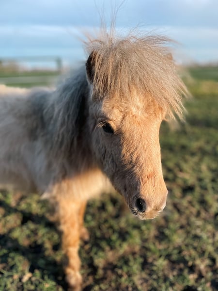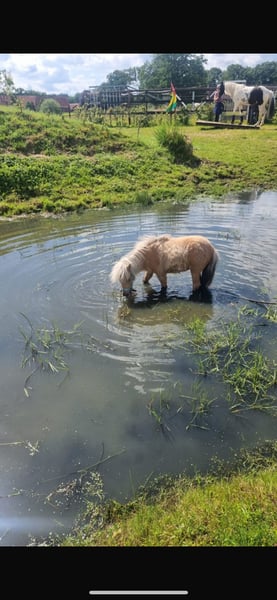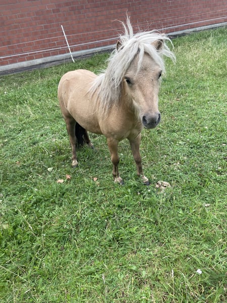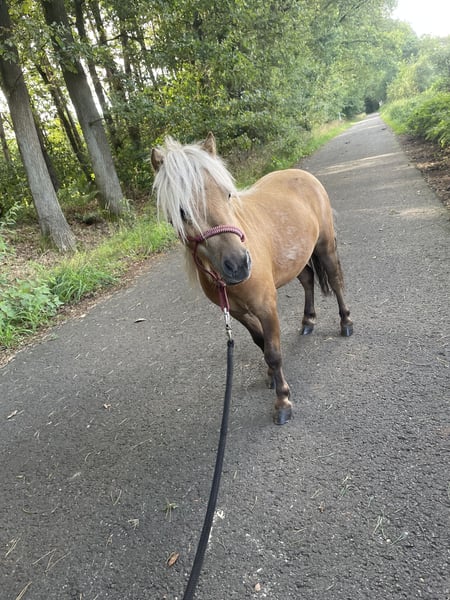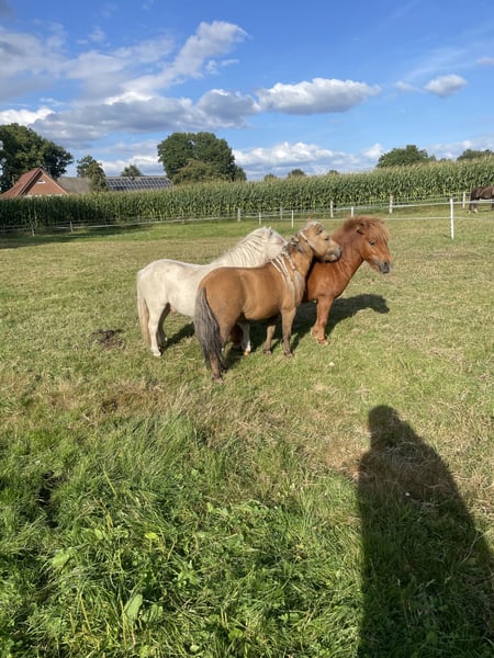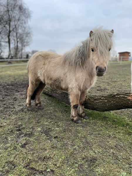 Dieser wunderschöne, Dreijährige Hengst sucht ein neues Zuhause. Ich habe Kilby im Dezember zur Körung vorgestellt, leider wurde er nicht gekört, da er mit seinen zarten 77 cm doch einfach etwas zu klein war, was ihn aber nicht weniger zu einem tollen Freizeitpartner machen. Er kennt selbstverständlich Hufschmied, Tierarzt und den ganz normalen Hofalltag. Er war schon einige male alleine im Gelände und auch schon mit zu einem Trailkurs, auf dem er verschiedene Hindernisse bewältigt hat, wie z.B. Brücken und Wippen. Er steht aktuell nur mit Jungs zusammen, kennt es aber, Stuten in der Nachbarwiese zu haben und stört sich da nicht weiter dran. Da die Jungs gerne Jungpferdetypisch spielen, ist die Mähne leider vorne etwas in Mitleidenschaft gezogen worden, es ist aber schon wieder gut was nachgewachsen. Er hat ein sehr neugieriges Wesen, schaut sich neues aber sehr ruhig und besonnen an und ist dem Menschen sehr zugewandt, dabei aber stets angenehm zurückhaltend, weshalb ich denke, er würde sich auch sehr gut als Therapiepony eignen. Kilby wird nur in Shettygesellschaft vermittelt. Bei Fragen gerne unter WhatsApp melden: 015224359033 Mit freundlichen Grüßen Katharina Löcken