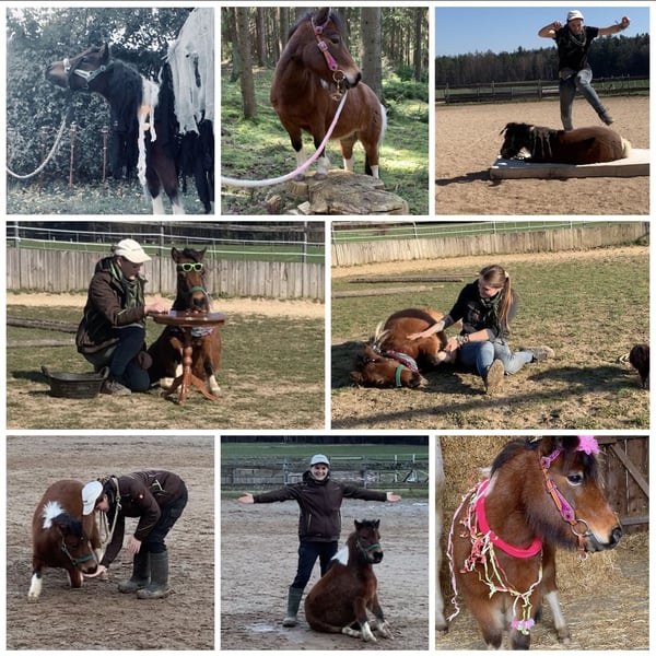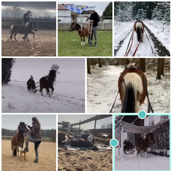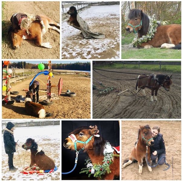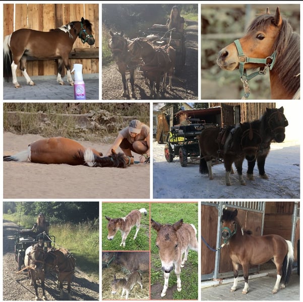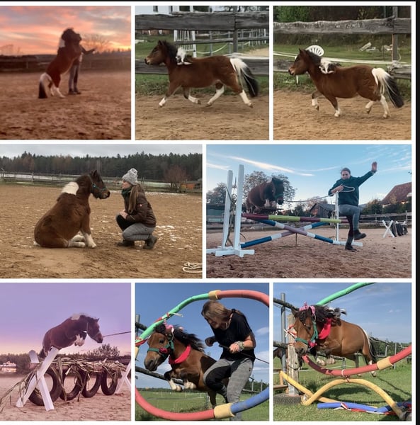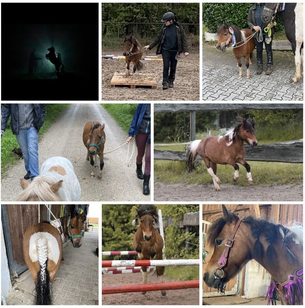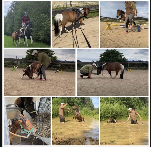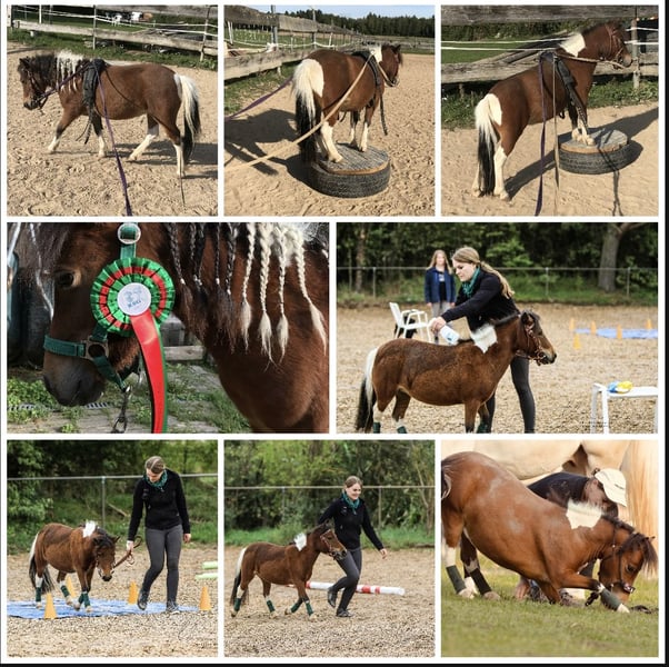 Wegen nicht Zahlung, sucht die kleine doch noch ein neues Zuhause. Aufgrund gesundheitlichen Gründen meinerseits, gebe ich nun die eigene Pferdehaltung auf Deswegen steht meine Minishetty Stute nun zum Verkauf. Lupi ist eine 12 Jahre alte, ca. 0,86m große Minishetty Scheckstute. Seit fast 12 Jahren bei mir. Kennt so ziemlich alles was man mit Pferd machen kann. Sie ist ein totales Zirkuspony. Sie ist eher der gemütliche Typ, kann aber je nach Laune auch schon mal Gas geben. Sie ist 1-&2- spännig gefahren, läuft außerdem vorm Schlitten, kennt Reitplatz abziehen, läuft im Gelände mit als Handpferd. Auch am Fahrrad läuft sie super mit. Kennt natürlich langzügel Arbeit überall & lässt sich auch brav longieren. Freispringen & oder an der Hand macht sie auch super. Sie springt super gerne u sehr gut. Einspännig vorm Sulky oder Kutsche läuft sie nicht gerne. Deswegen habe ich sie seit ein paar Jahren nicht mehr angespannt. Sie läuft aber jedes Jahr vorm Schlitten im Winter & hat auch bis vor kurzem immer den Platz abgezogen. Freiarbeit u Zirzensik macht sie super gerne. Sie kann einige Tricks wie steigen, ablegen auf jedem Untergrund & überall, springt Capriole, Dreh dich, smile, Zirkeln, rückwärts frei folgen, einparken, spanischen Gruß & Schritt, Nein sagen, Kompliment, Bergziege, Podestarbeit in allen Varianten & Piaffe ist angefangen. Ebenfalls kennt sie alles an Gelassenheitstraining, Shootings mit Nebelmaschine, Fackeln Kostümen, Flügeln etc. Bemalen mit Fingerfarben & steht super artig beim putzen. War schon auf sämtlichen Umritten mit dabei, auf Gelassenheitsprüfungen ( Note 1) Ausflüge zu Gewässern, Burgen usw. Natürlich Schmiede u Verladefromm. Läuft Barhuf. Sie kennt Box u Offenstallhaltung, steht im Offenstall u ist verträglich mit alles u jedem. Bleibt auch problemlos alleine. Lupi ist sehr leicht zu händeln aber ist einfach eine ministute (Diva) die immer wieder mal klare Ansagen braucht. Sonst macht sie i-wann was sie will & würde mit Sicherheit auch zwicken. Sie ist super leicht & einfach zu händeln. Sie ist nicht geritten! Equitenpass natürlich vorhanden. War regelmäßig beim Schmied & wurde entwurmt. Tetanus geimpft ebenfalls. Sie ist gesund & munter, keine Rehe oder Ekzem! Auch ist sie E-Zaun sicher. Jedes Jahr vorsichtig angegrast worden & war stundenweise auf dem Gras. Einen großen Teil des Zubehörs gebe ich mit dazu! Weiteres Zubehör kann separat erworben werden. Videos habe ich & können bei ernsthaften Interesse natürlich gesendet werden. Anschauen ist jederzeit nach Absprache möglich! Da es sich hierbei um ein Lebewesen handelt, sind dies lediglich subjektive Eindrücke von mir und keine zugesicherten Eigenschaften des Pferdes. Privatverkauf!