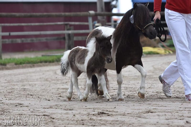 Staatsprämienstute Original Mini Shetland U87 cm Wij bieden onze prachtige staatsprämienstute te koop aan. Ze heeft bij ons vijf veulens gekregen, die allemaal zeer correct en met veel temperament waren. Ze is rangnederig, absoluut schuw voor hekken, en vermijdt conflicten. Geen pony voor kinderen, omdat ze mensen tegenover overvoorzichtig is. Haar veulens laten zich probleemloos aanraken. Gezondheidstechnisch heeft ze bij ons nooit problemen gehad. Haar indrukwekkende manen en staart maken haar tot een echte blikvanger, en dit vererft ze ook. Haar geweldige draf, die zeker de aandacht trekt, is eveneens een pluspunt. Bezichtiging is altijd mogelijk na afspraak. De afstamming kan op verzoek worden verstrekt, maar verzoeken zonder naam of met de vraag "Wat is de laatste prijs?" worden genegeerd.