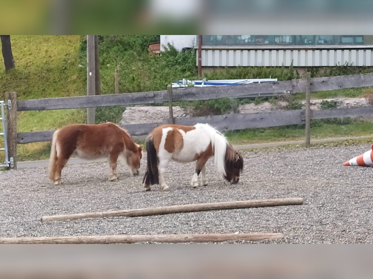 Aus gesundheitlichen Gründen meinerseits müssen wir uns schweren Herzens von Gipsy und Coco trennen. Beide sind geführt von Kindern reitbar, kennen Hunde, Kinder, landwirtschaftliche Geräte, Spiel-Spaß-Tage. Schecke: Gipsy, 7jährig, will und muß was tun (körperlich und geistig), zweispännig souveräner als einspännig, kleine "Arbeitsmaschine" Fuchs: Coco, 18jährig (seit 3jährig bei uns), braucht CushingTabletten, ansonsten fit, ein kleiner Allrounder Leben im Offenstall mit 2 Kleinpferden. Am liebsten gemeinsam abzugeben, einzeln nur an einen Platz mit einem anderen Shetty.