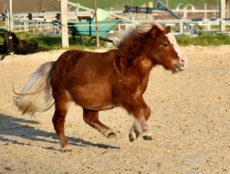 Geb. 06.05.2023 / Stm. ~85cm Mir ist es absolut wichtig den perfekten Menschen für Bambi zufinden, denn ich bin es leider nicht… Er zieht nur aus, wenn ihm jemand das Zuhause bieten kann, wozu ich leider nicht mehr im Stande bin ihm zu bieten. Bambi hat seine Vergangenheit, worauf ich bei näherem Interesse sehr gerne genauer darauf eingehe. Ich bin leider gesundheitlich und auch Jobmässig nicht mehr in der Lage ihm die Aufmerksamkeit zu geben, die er benötigt. Bambi wird zwar diesen Frühling erst 3, jedoch ist er nicht dafür gemacht als Rasenmäher zu verenden. Bambi zeigt bereits jetzt, eine enorme Arbeitsmoral, will immer gefallen und ist sehr lernwillig. Ich kenne beide seine Eltern und beide werden erfolgreich im Kutschsport genutzt und hier sehe ich auch Bambi. Bambi kommt aktuell 1x in der Woche mit als Handpferd ins Gelände und darf 2x Wöchentlich bei der Bodenarbeit glänzen. Bambi lässt sich überall anfassen, putzen und streicheln. Kennt Fohlen ABC wie Führen, Hufe auskratzen, ect. Lernt gerade spielerisch das Zirkeln kennen und kann schon das ein oder andere Kunststück wie "Smile". Lässt sich ohne Probleme verladen und ist sehr sozial, sowohl zu Pferden wie auch anderen Ponys. Er ist korrekt geimpft und entwurmt. Regelmässige Zahnkontrollen und Hufbearbeitungen wurden immer gemacht. Kastriert ist er seit 31.10.2024. Er verhält sich seinem Alter entsprechend Frech und braucht eine klare Führung. Ich wünsche mir für Bambi jemand wo sich komplett auf ihn einlässt - denn er braucht sehr viel Aufmerksamkeit und Liebe. Es wäre schön wenn er in seinem neuen Zuhause einen Ponyfreund hätte. Toll wäre wenn er mit Pferden und Mini's zusammen leben könnte in einer Gruppe. Gerne gebe ich ihn mit seinem Equipment ab. Bambi kann im Kanton Baselland (Schweiz) jederzeit besichtigt werden. Ich hoffe Bambi findet so seinen Menschen!