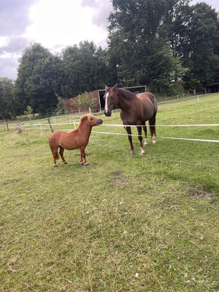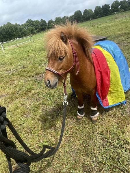 Masou ist auf der Suche nach einem neuen Zuhause. Der bald dreijährige, kräftig gebaute Wallach, welcher letzten Herbst kastriert wurde, ist ein überaus gut motivierbares Pony. Masou kennt selbstverständlich Hufschmied, Tierarzt und den alltäglichen Hofalltag. Er kennt alleine spazieren im Gelände, war schon mit zu 2 Trailkursen, auf denen er verschiedene Hindernisse kennengelernt und auch die Anfänge der Freiarbeit gezeigt bekommen hat, welche er sehr schnell umsetzen konnte. Er kennt es mit Hengsten zu laufen, ebenso lief er aber auch nach der Kastration schon Wochenweise mit den Stuten, beides stellt für ihn kein Problem da, da er sehr sozial ist. Masou ist einfach ein Schatz im Umgang und sucht jetzt jemanden mit einer Aufgabe für ihn. Masou wird nur in Shettygesellschaft vermittelt und für ihn gilt Platz vor Preis. Einziges kleines Manko, was ihn aber nicht einschränkt, er hat eine kleine Fehlstellung an den Zähnen und muss aber, laut meinem Pferdezahnarzt nicht öfter zum Zahnarzt, als gesunde Pferde. Bei Fragen oder Interesse gerne unter WhatsApp melden: 015224359033 Mit freundlichen Grüßen Katharina Löcken